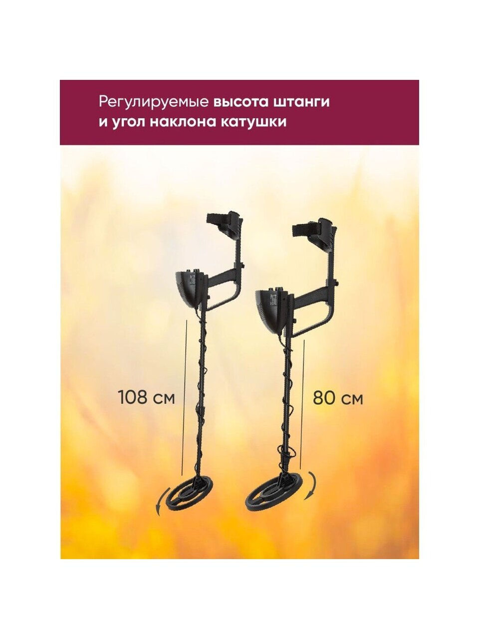 - Вы можете настроить металлоискатель под свои индивидуальные потребности, регулируя высоту штанги и угол наклона катушки.