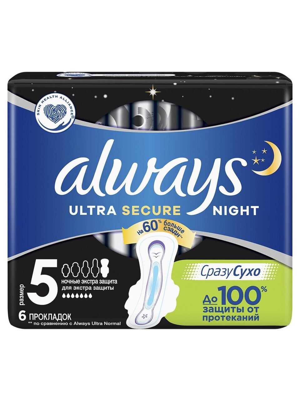 Оставайтесь под надежной защитой, как бы активно вы ни двигались. Можно использовать как в дневное, так и в ночное время Always Ultra Secure Night — лучшие гигиенические прокладки Always для защиты в ночное время.