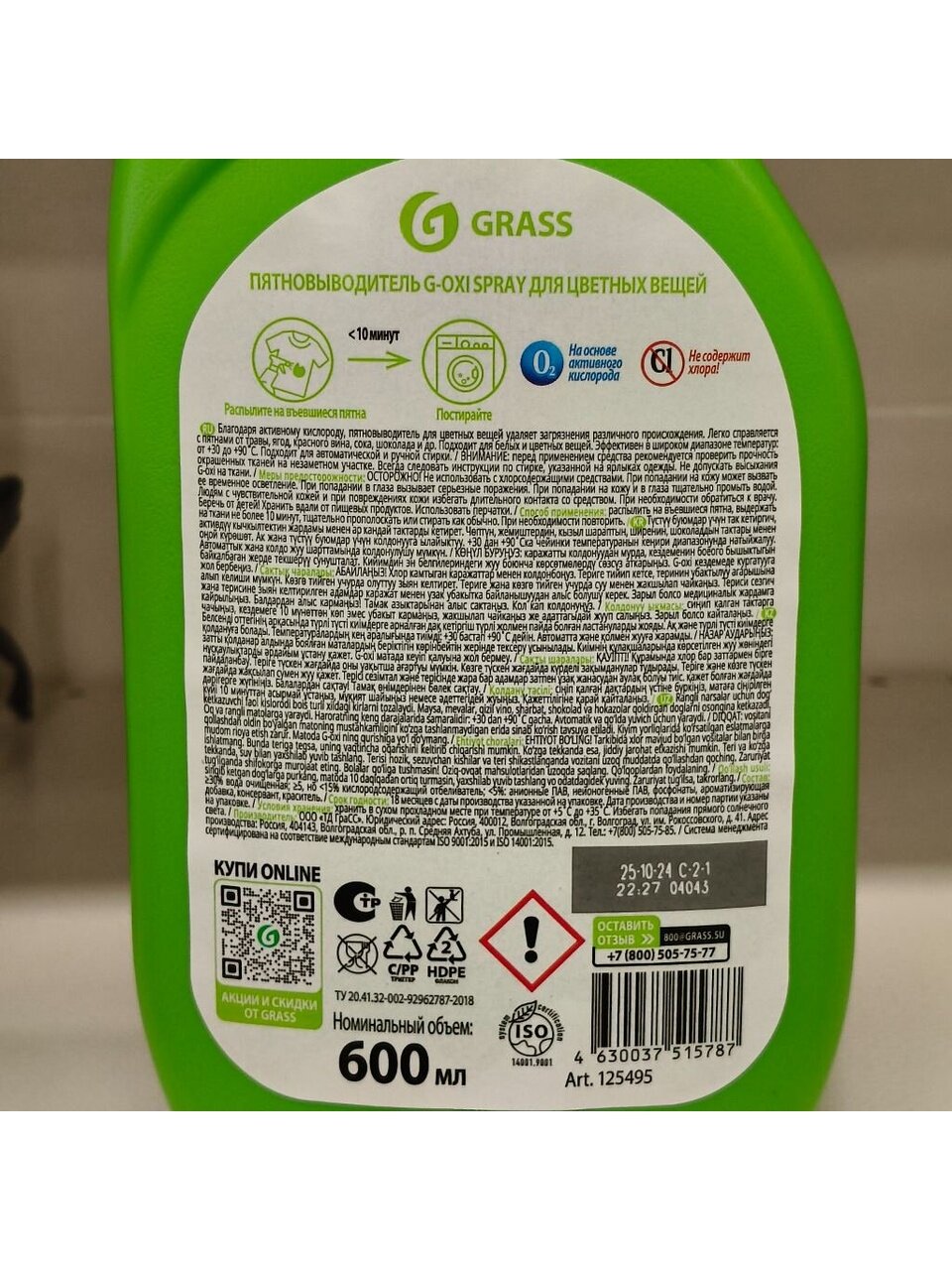 Вы можете приобрести «Пятновыводитель Grass, G-oxi spray, 600 мл, жидкость, для цветного, кислородный, 125495» и другие товары в нашем интернет-магазине в Брянске по низким ценам и с бесплатным самовывозом.