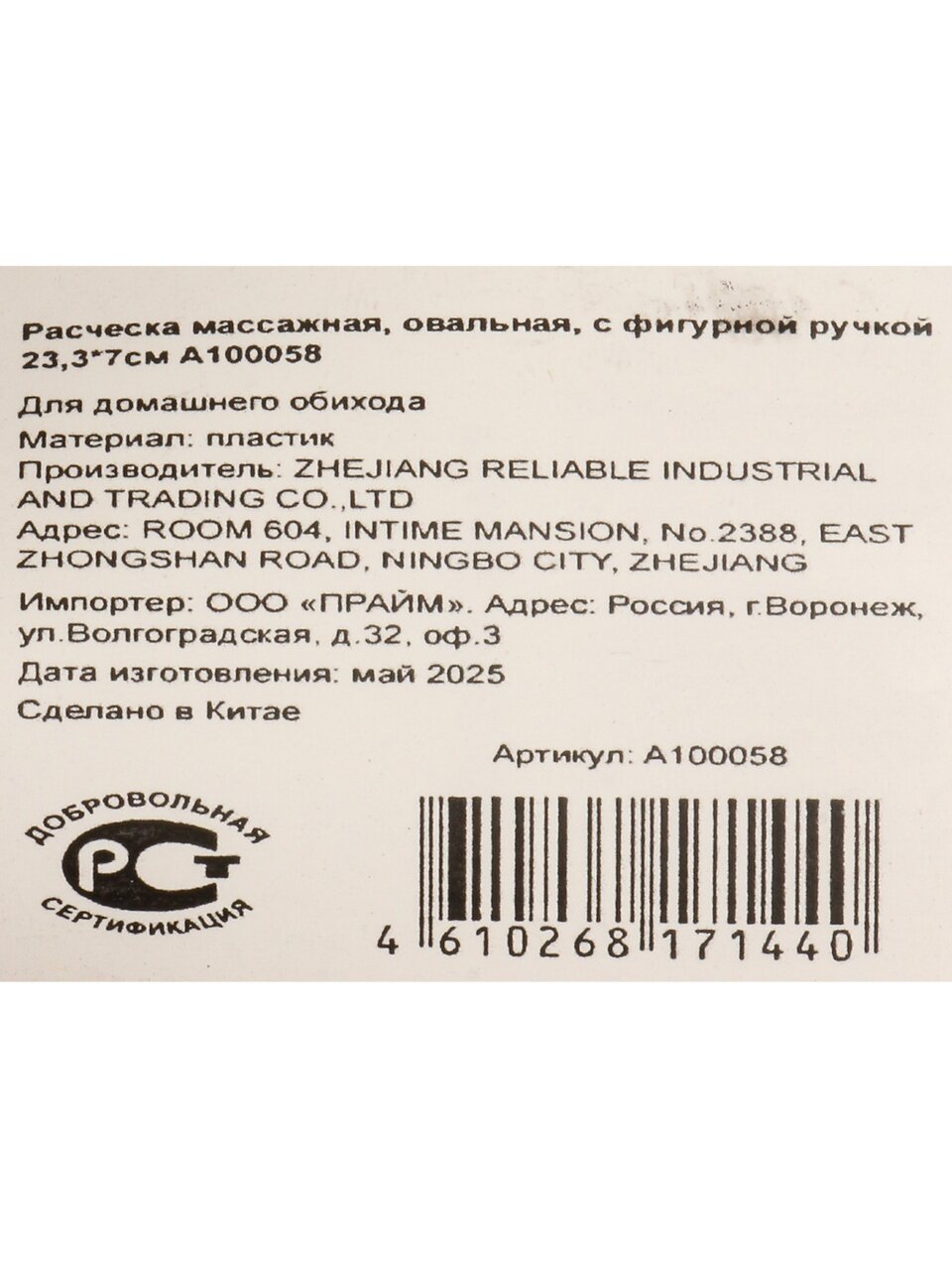 Вы можете приобрести «Расческа массажная, 23.3х7 см, пластик, пластиковая ручка, овальная, с фигурной ручкая, A100058» и другие товары в нашем интернет-магазине в Обнинске по низким ценам и с бесплатным самовывозом.