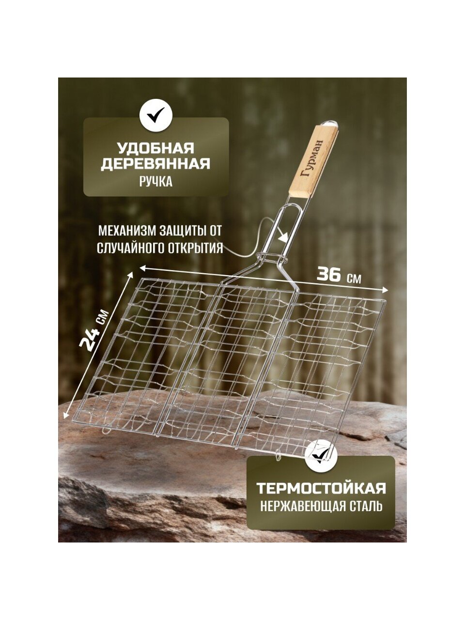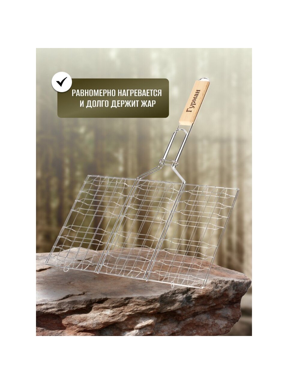 Решетка для барбекю Гурман повысит уровень Вашего комфорта на природе. Длинная ручка обеспечит безопасное взаимодействие с продуктами на огне и не позволит обжечься. Компактный размер позволит Вам удобно разместить аксессуар в шкафу для кухонной утвари или в багажнике автомобиля.