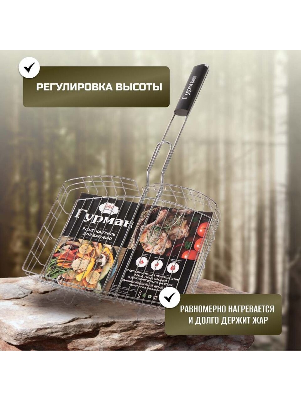 Решетка для барбекю Гурман легкая и компактная. Ее удобно брать с собой на пикник или в поход.