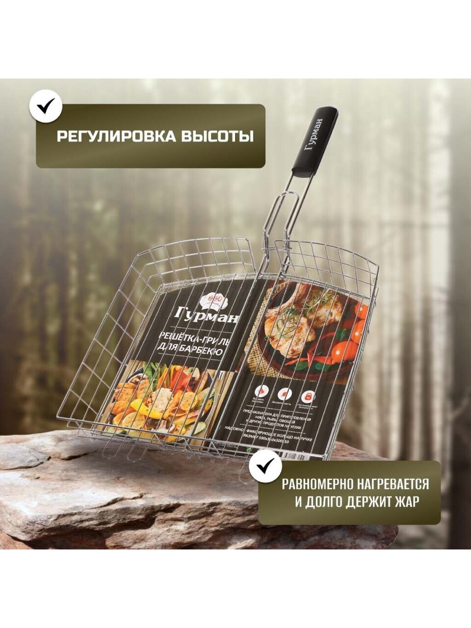 Решетка для барбекю Гурман Люкс легкая и компактная. Ее удобно брать с собой на пикник или в поход.