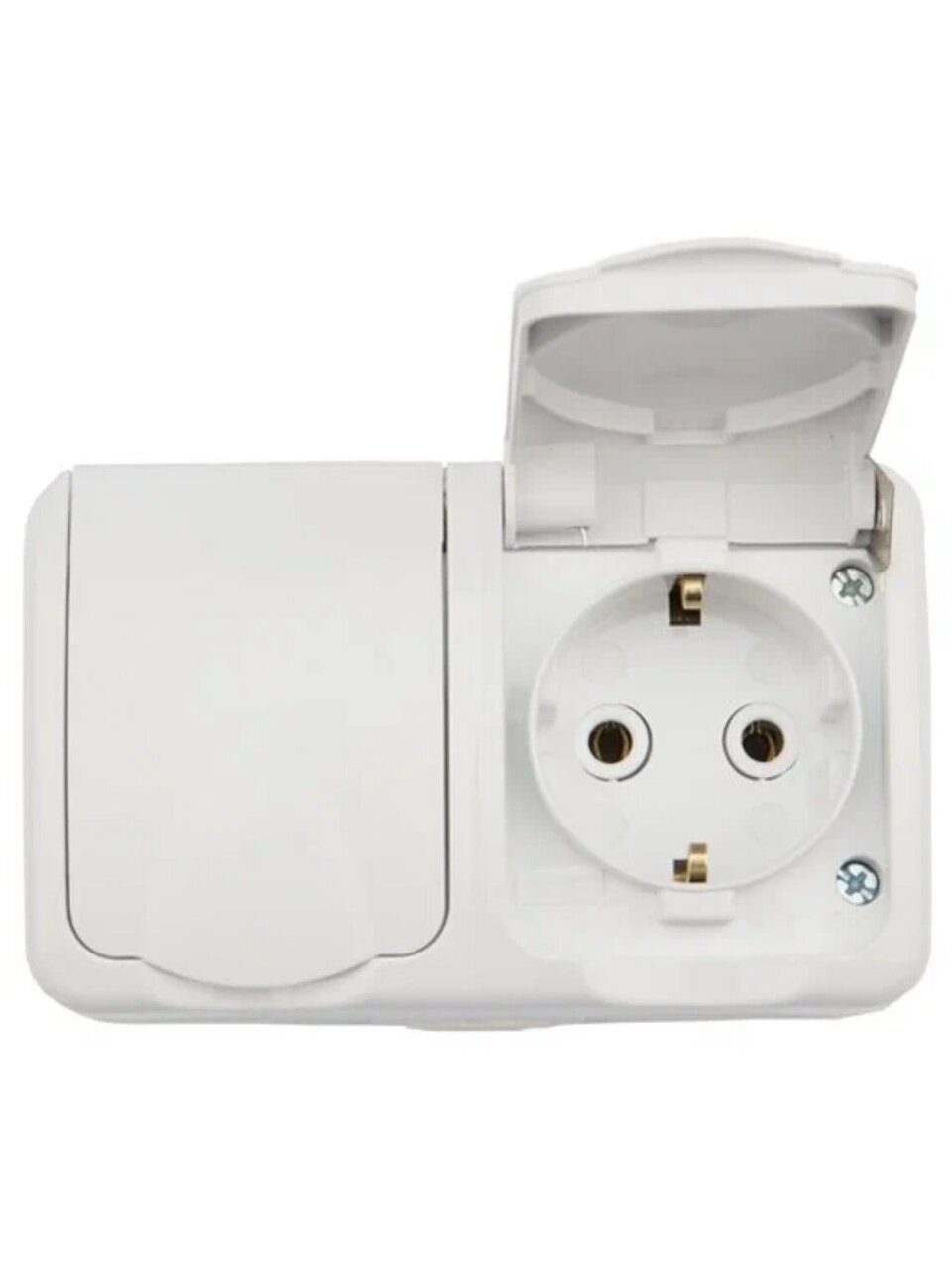 Защитная крышка на лицевой поверхности защищает розетку от попадания брызг воды. Отлично подойдет для дачи, ванной комнаты, бассейна и улицы, при наличии навеса, защищающего от прямого попадания влаги. Корпус механизма розетки выполнен из абсолютно негорючего материала – керамики. Блок прост и легок в установке.