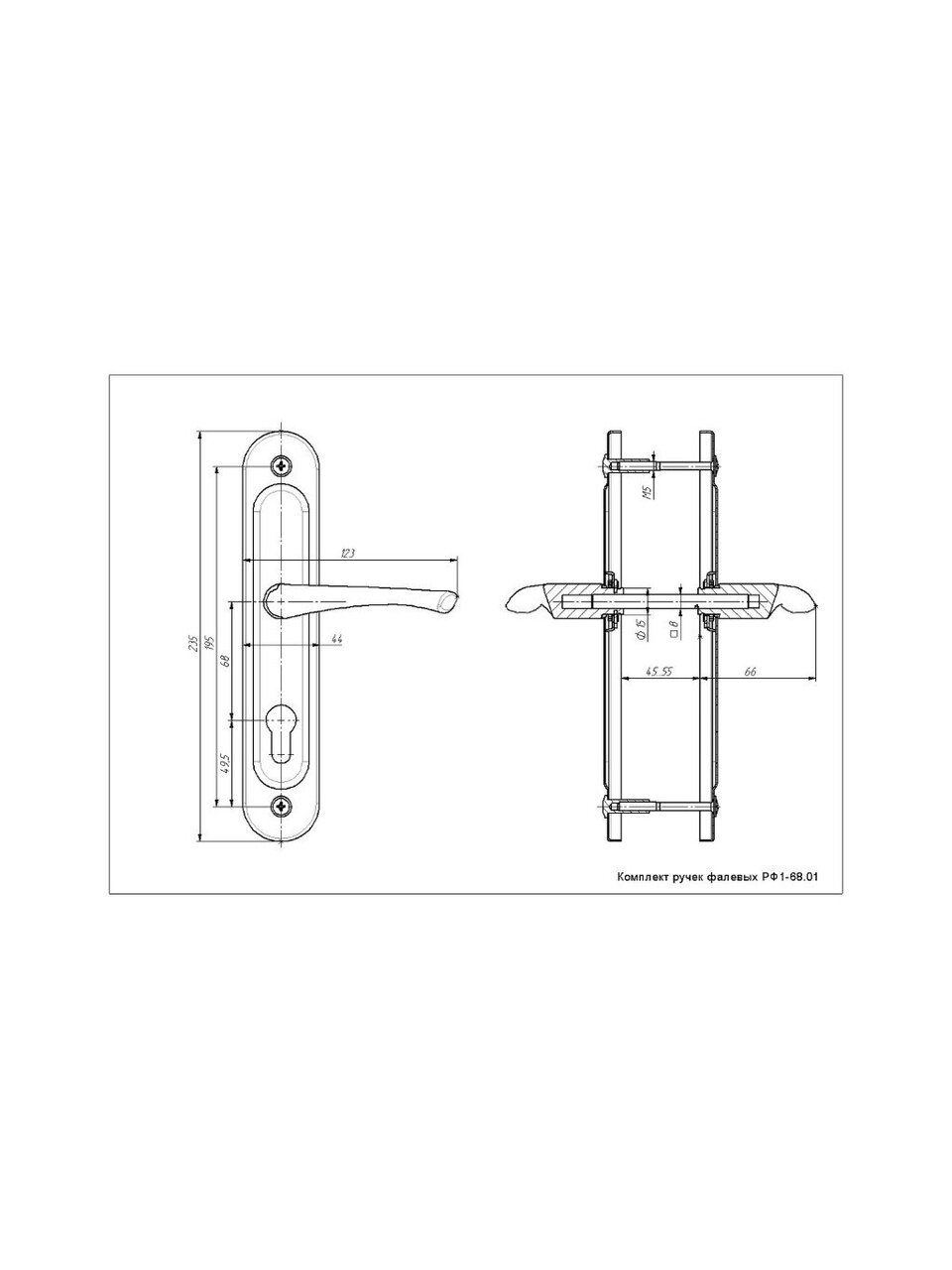 Дверная ручка на планке Зенит под цилиндр серии РФ1-68.01 предназначена для установки в деревянные и китайские металлические двери толщиной 45-55 мм.