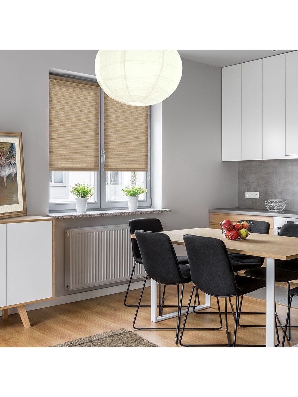 Штора рулонная регулирует освещение комнаты, опускается до любого желаемого уровня.