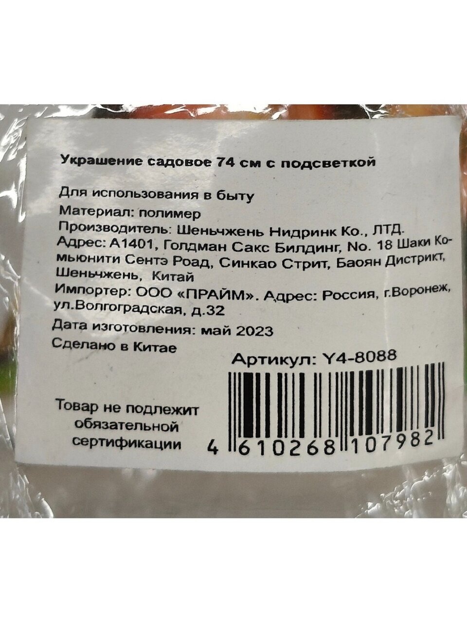 Вы можете приобрести «Украшение садовое 74 см, полимер, с подсветкой, Y4-8088» и другие товары в нашем интернет-магазине в Коврове по низким ценам и с бесплатным самовывозом.
