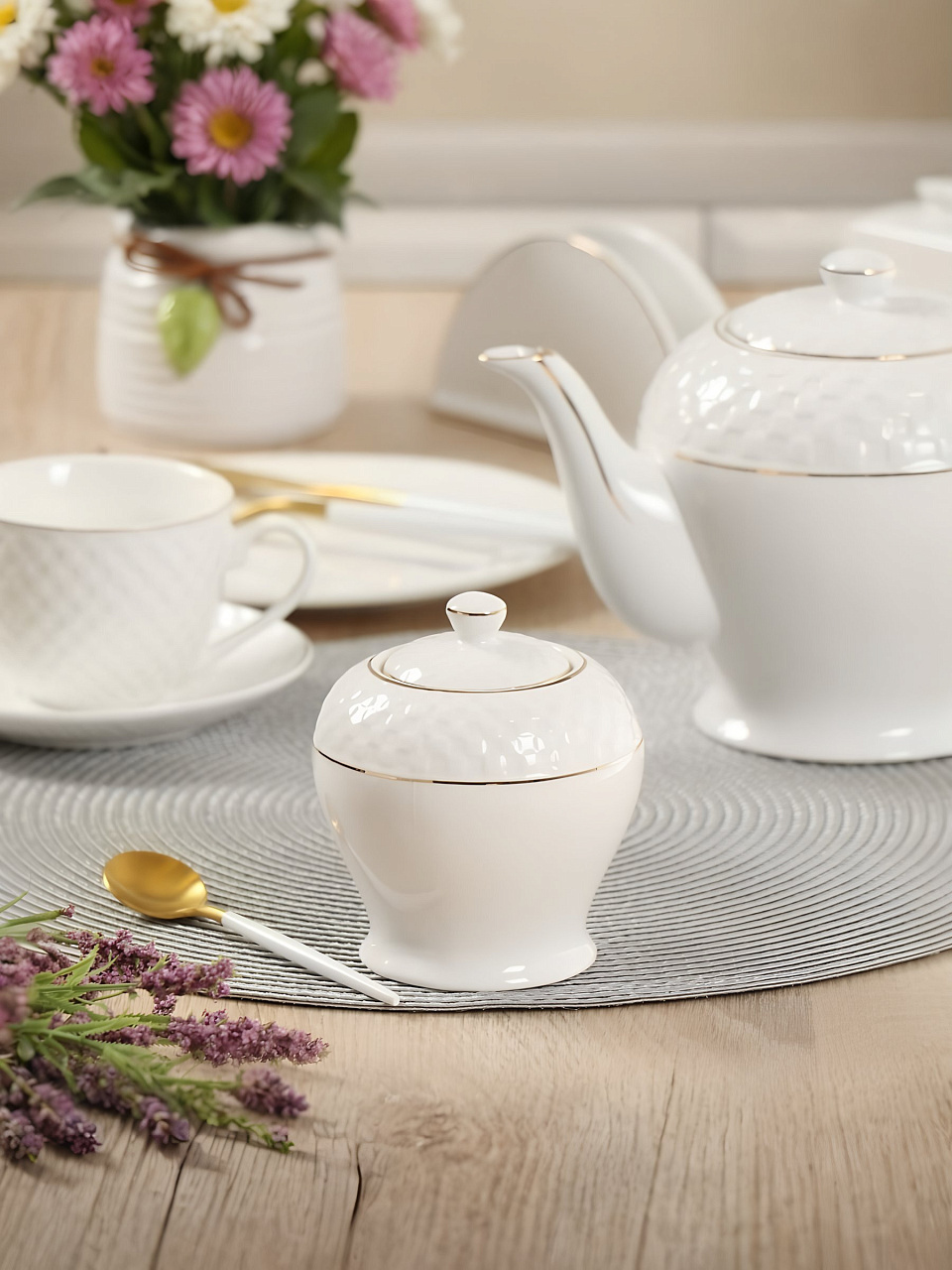 Сахарница Кембридж идеально подходит для сервировки как праздничного застолья, так и ужина в тихом и уютном домашнем кругу. Изделие выполнено в интересном дизайне, поэтому будет по достоинству оценено как членами вашей семьи, так и гостями. Традиционная форма и использованная цветовая гамма изделия, придадут вашему ужину еще большей гармонии, эмоциональной наполненности и добавят нотку романтичности.
