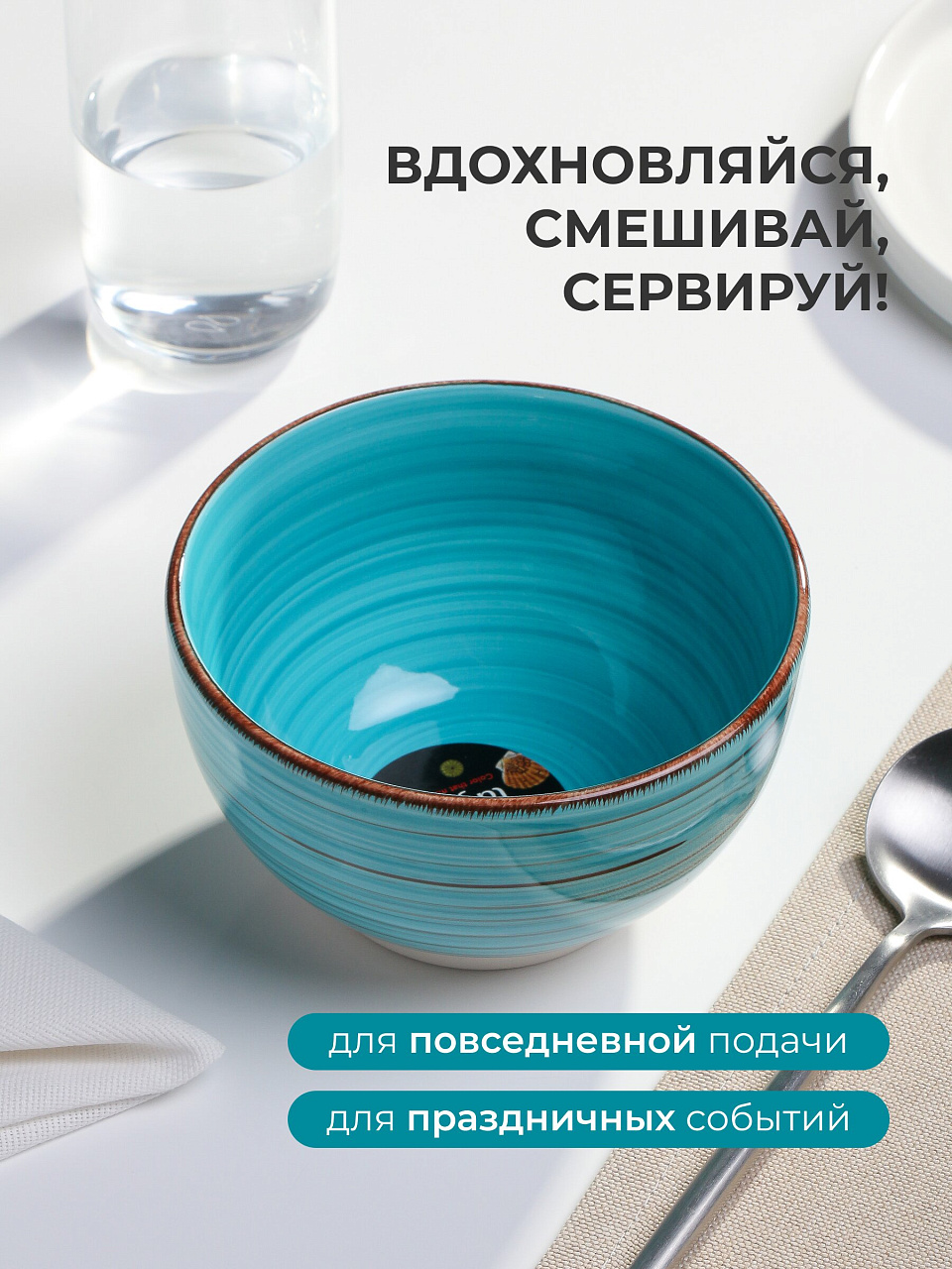 - Уникальный дизайн Laguna — голубой салатник с полосатым рисунком станет акцентом на столе