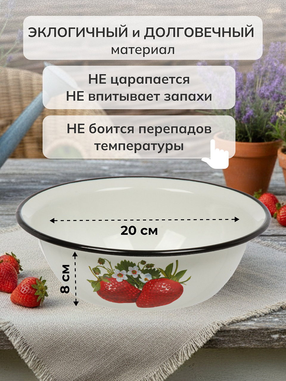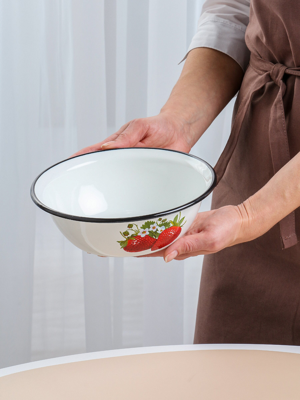 Часто спрашивают: «Как выбрать миску для дачи?» или «Что лучше для замешивания теста — эмаль или пластик?». Эмалированная миска выигрывает по долговечности, экологичности и гигиеничности по сравнению с пластиком и алюминием. Она не подходит для использования в микроволновке и посудомоечной машине, зато отлично справляется с задачами на плите или в холодильнике. Если вы ищете, какую миску купить для салатов или маринования овощей — этот вариант универсален и надёжен.