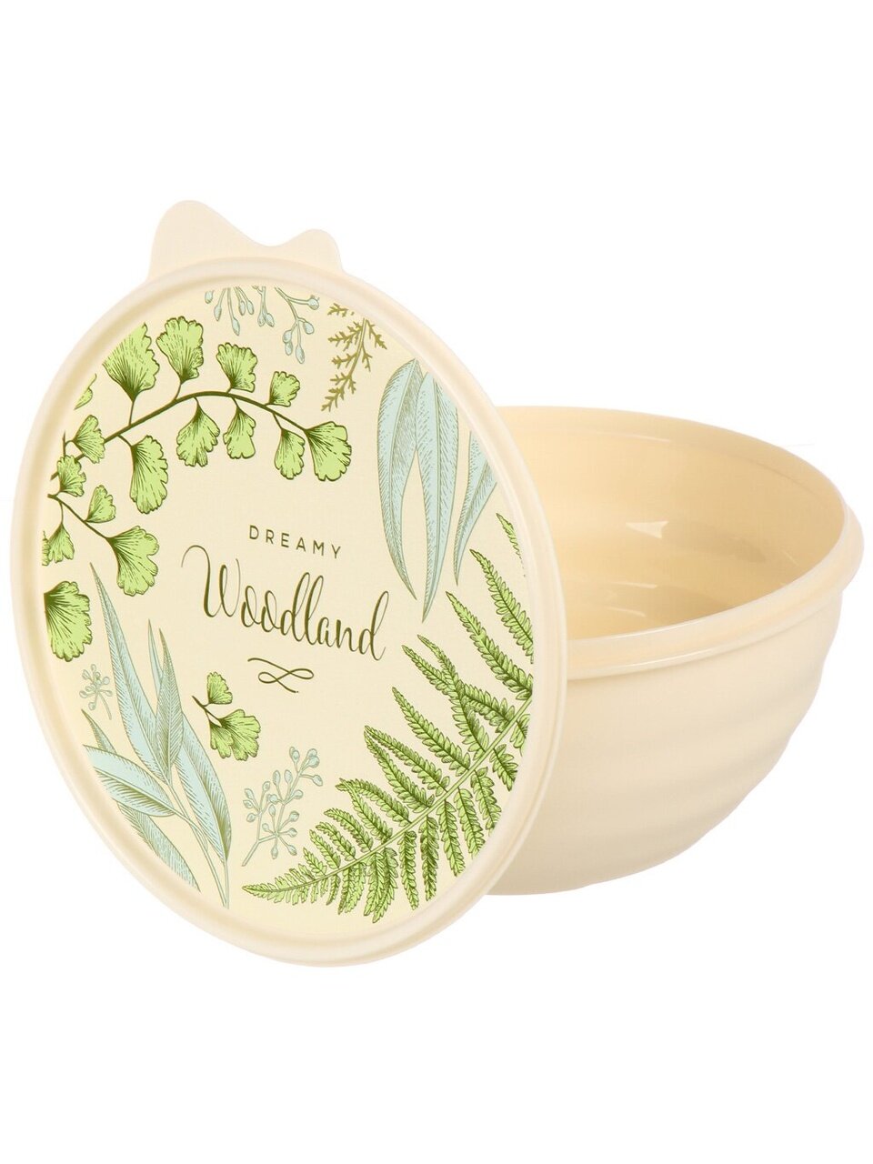 Миска пластиковая с крышкой 0.85 л Wave — компактное решение для хранения и разогрева, подходит для дома, дачи и перекусов на работе. Бежевая, с рисунком листьев, диаметр 15 см.