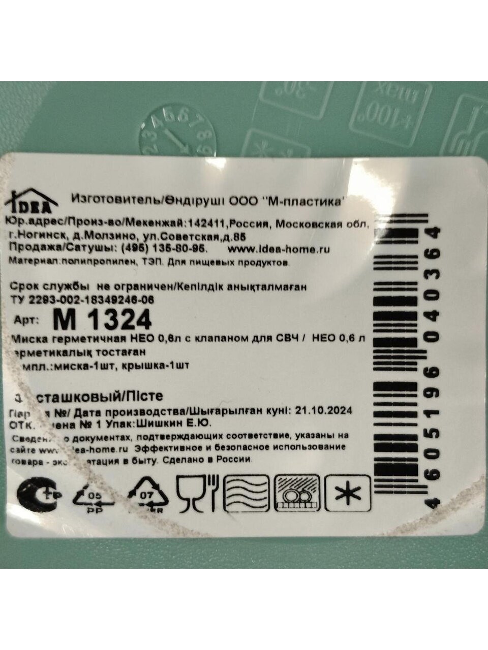 Диаметр миски — 15 см, высота — 7.2 см, объём — 0.85 литра (округленно 0.9 л). В комплекте одна миска с крышкой.