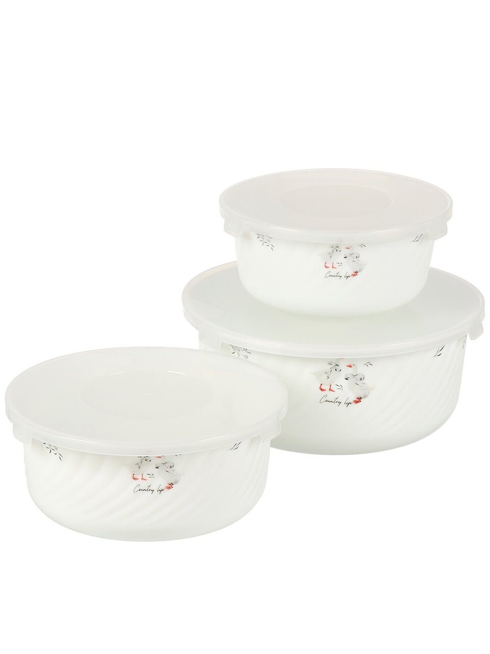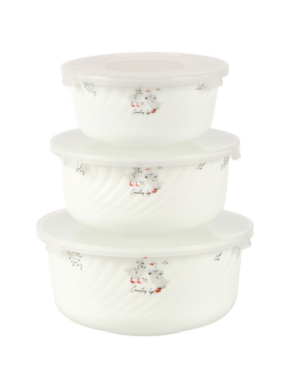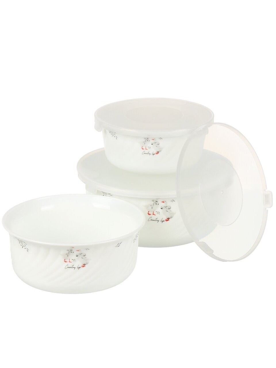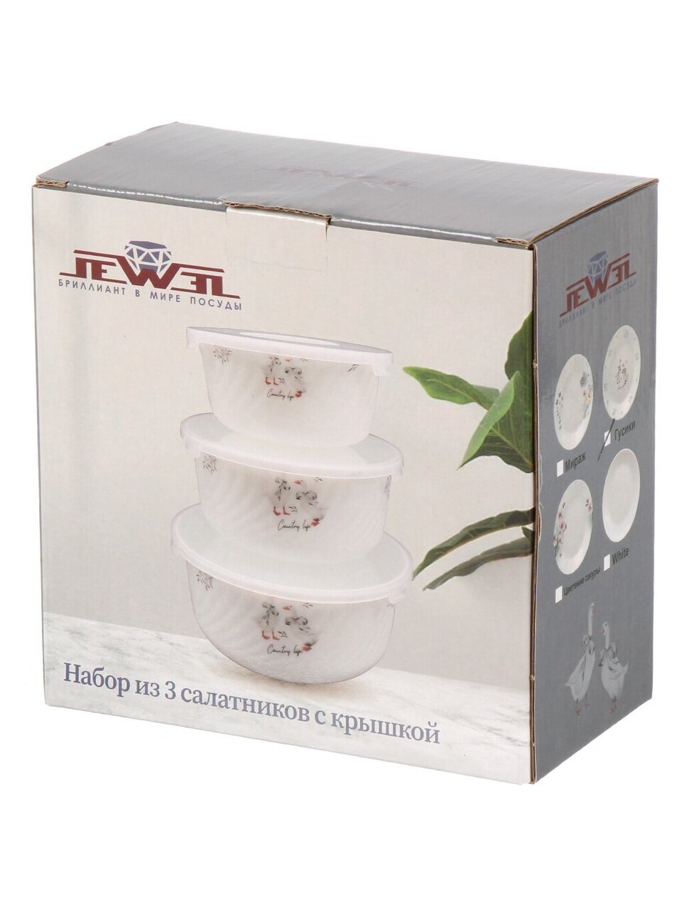 Набор салатников из стеклокерамики с крышками (3 шт., серия «Гусики», Jewel) — практичное решение для сервировки, хранения и подарка. Безопасно для СВЧ и посудомоечной машины.