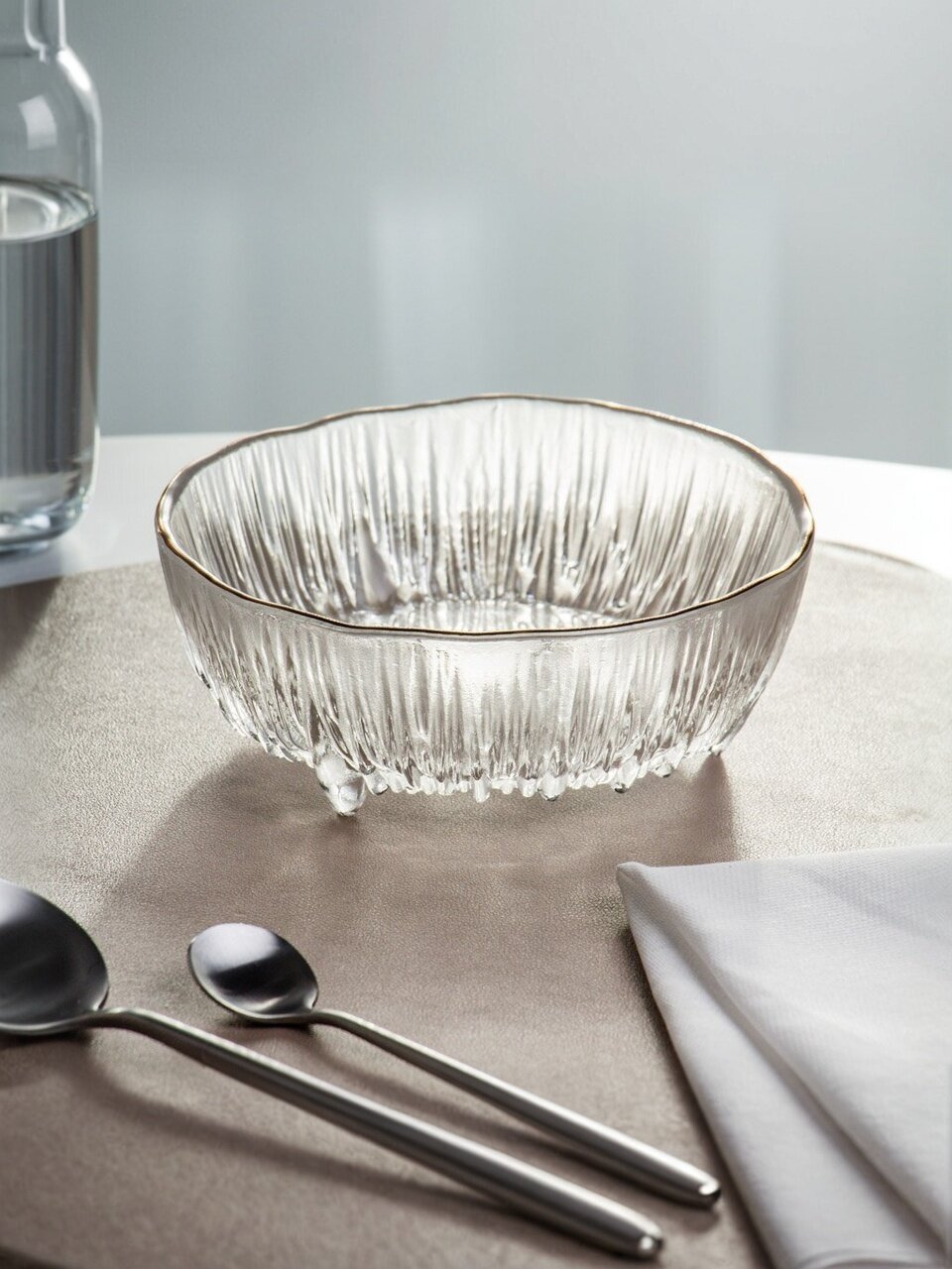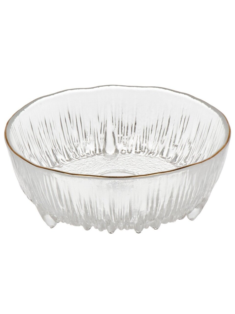 - Уникальный дизайн: прозрачное стекло с рельефным узором и золотой окантовкой для эффектной подачи салатов и закусок