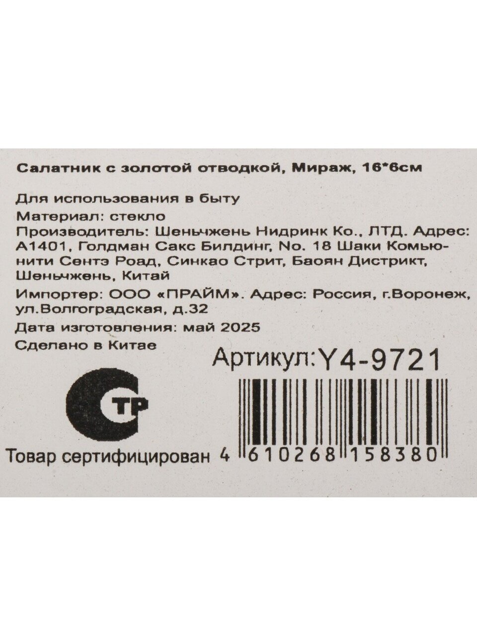 Вы можете приобрести «Салатник стекло, 16х6 см, с золотой отводкой, Мираж, Y4-9721» и другие товары в нашем интернет-магазине в Клинцах по низким ценам и с бесплатным самовывозом.