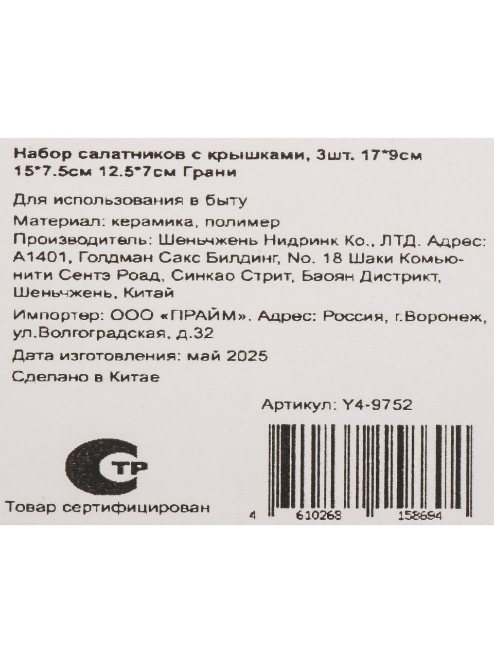 Набор салатников из керамики «Грани» — это оптимальный выбор для сервировки салатов, закусок, фруктов или хранения готовых блюд. Благодаря трём размерам (17х9, 15х7.5, 12.5х7 см) вы легко подберёте подходящую ёмкость для любого случая: от семейного ужина до пикника на даче. Керамика безопасна для пищевых продуктов, не впитывает запахи и легко моется, а полимерные крышки сохраняют свежесть и защищают от пересыхания. Для многих покупателей важно знать: можно ли ставить такие салатники в СВЧ или мыть в посудомоечной машине? Ответ — да, они полностью подходят для этих задач, что экономит ваше время.