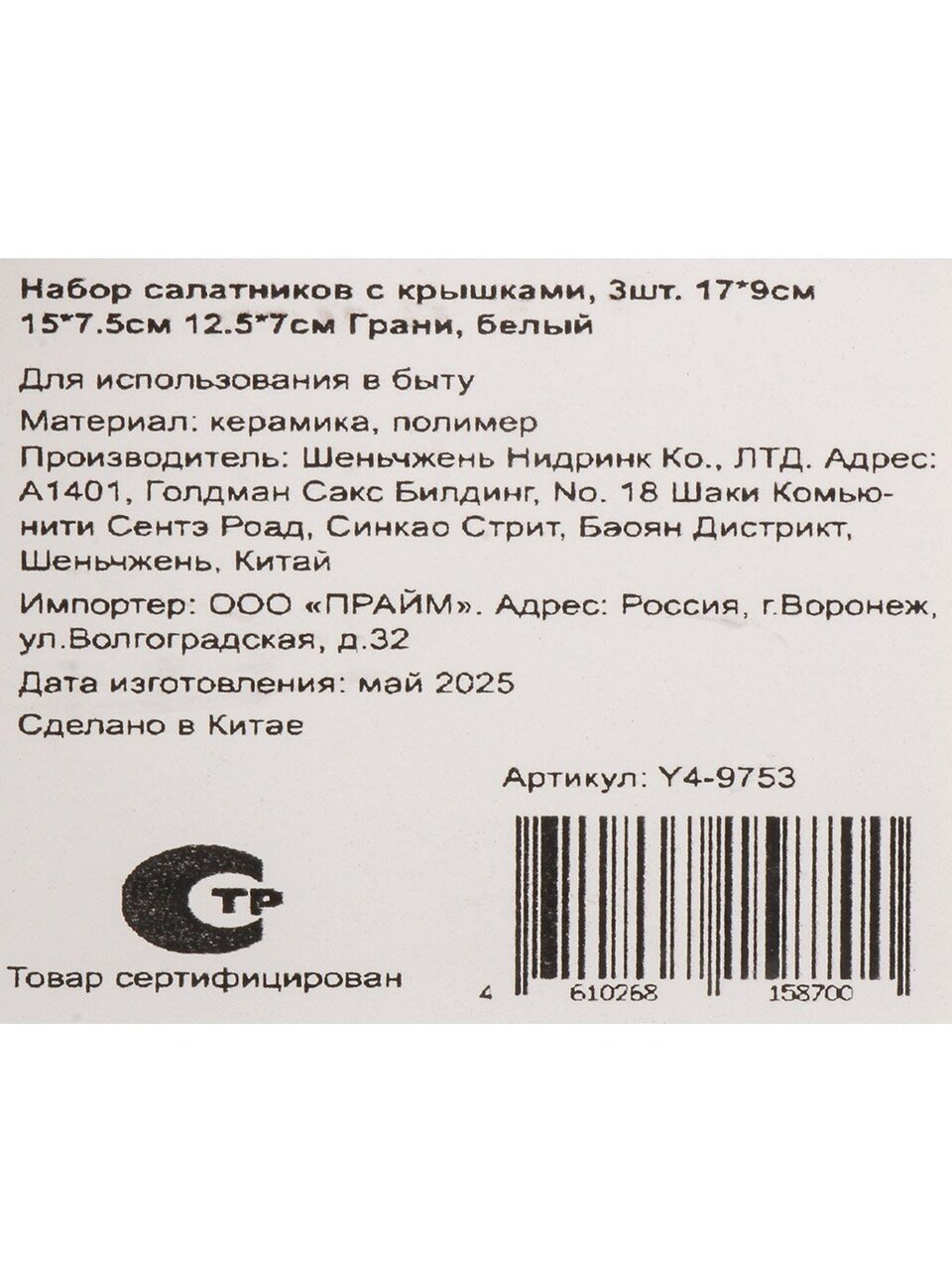 Набор керамических салатников с крышками 3 шт. «Грани» — стиль и удобство для сервировки, хранения и подарка. Закажите по выгодной цене с доставкой!