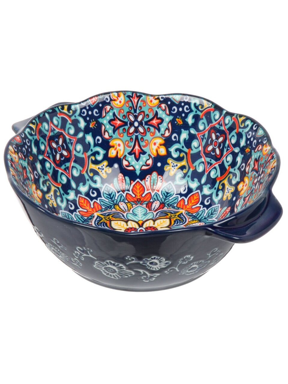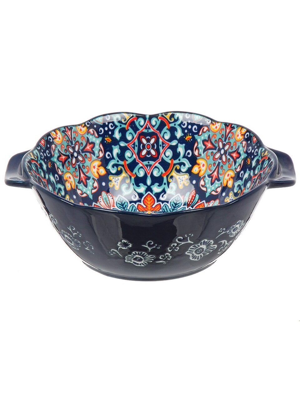 Салатник керамический 1.2 л «Самарканд» (24х20 см, синий) — стильное решение для сервировки, подходит для салатов, закусок и горячих блюд, легко моется и не впитывает запахи.