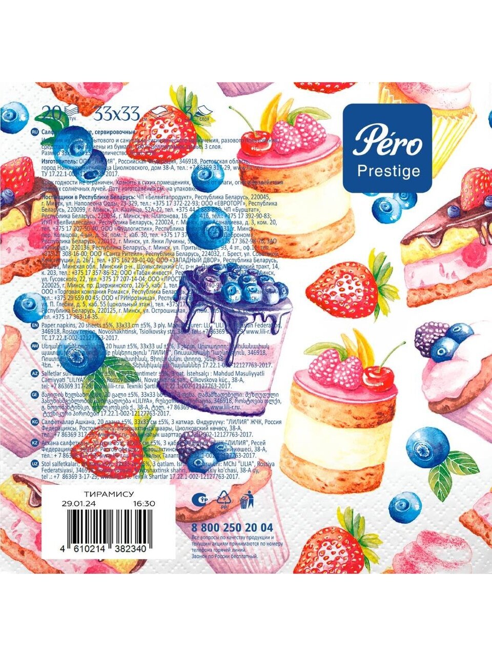 Вы можете приобрести «Салфетки Pero, Prestige Тирамису, 20 шт, 3 слоя, 33х33 см, 2340» и другие товары в нашем интернет-магазине в Железногорске по низким ценам и с бесплатным самовывозом.