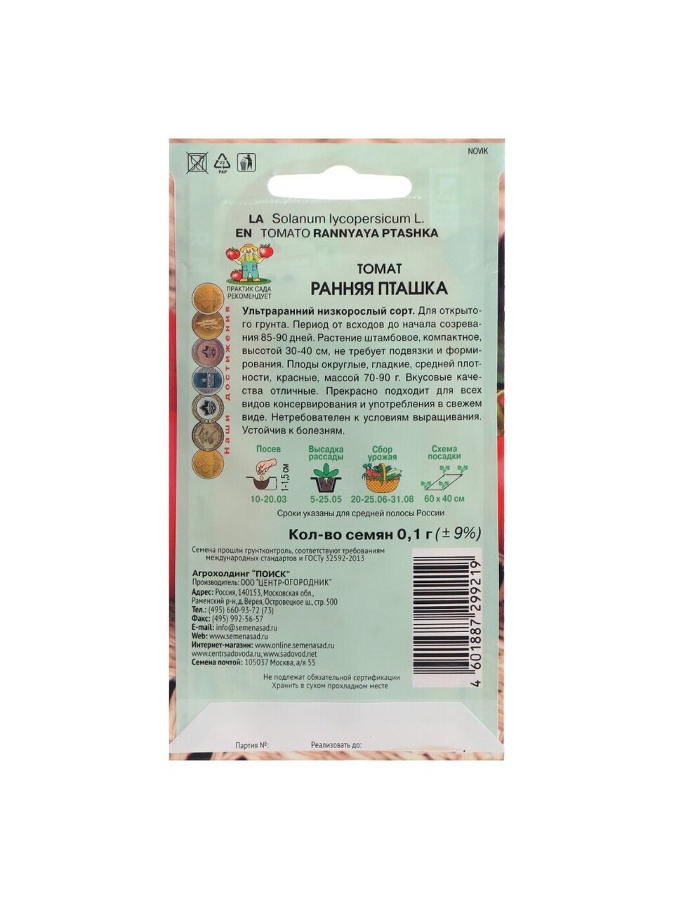Вы можете приобрести «Семена Томат, Ранняя пташка, 0.1 г, цветная упаковка, Поиск» и другие товары в нашем интернет-магазине в Липецке по низким ценам и с бесплатным самовывозом.