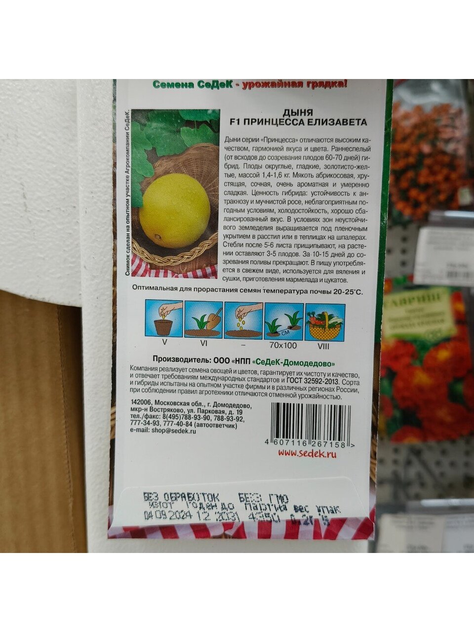 Вы можете приобрести «Семена Дыня, Елизавета F1, цветная упаковка, Седек» и другие товары в нашем интернет-магазине в Орле по низким ценам и с бесплатным самовывозом.