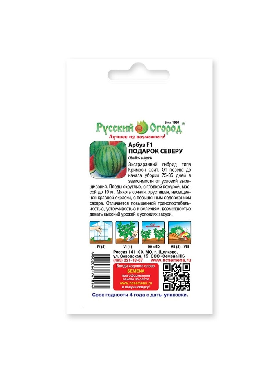 Вы можете приобрести «Семена Арбуз, Подарок Северу F1, цветная упаковка, Русский огород» и другие товары в нашем интернет-магазине в Ельце по низким ценам и с бесплатным самовывозом.
