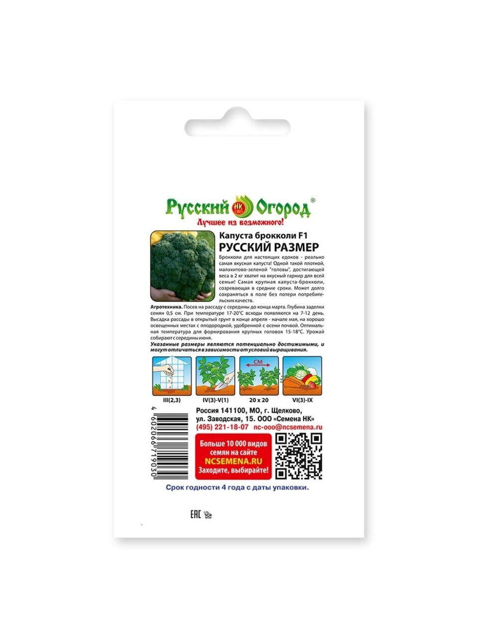 Вы можете приобрести «Семена Капуста брокколи, Русский размер F1, цветная упаковка, Русский огород» и другие товары в нашем интернет-магазине в Курске по низким ценам и с бесплатным самовывозом.