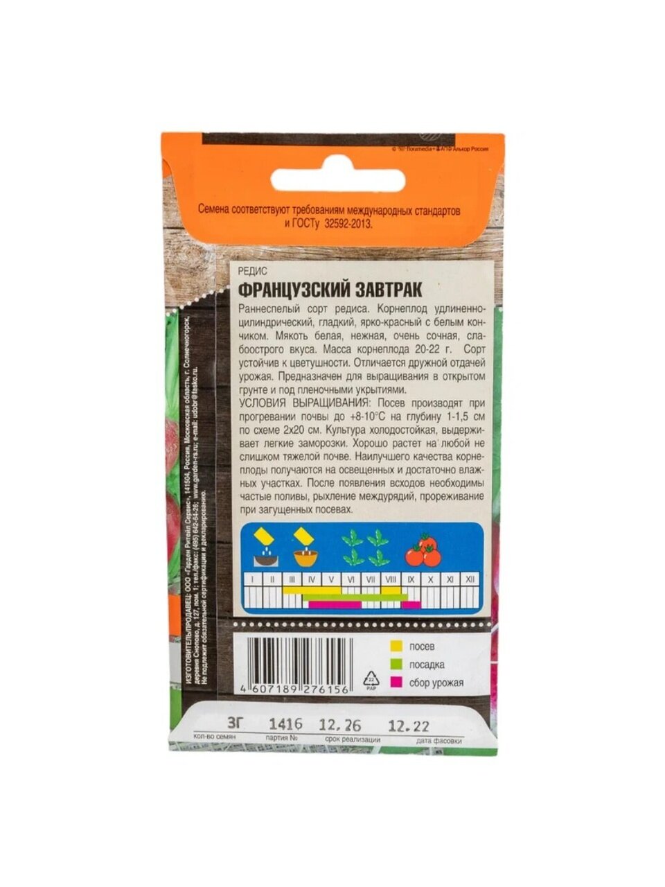 Откройте для себя свежесть и аромат весеннего урожая с семенами редиса "Французский завтрак" от Тимирязевского питомника. Эти семена в цветной упаковке помогут создать на вашем столе настоящий праздник вкуса и пользы.