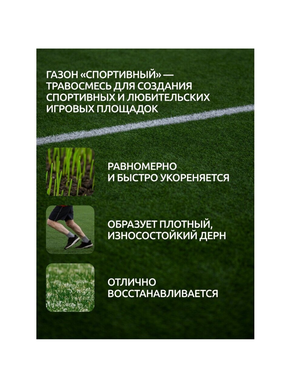 Газон «Спортивный» - это травосмесь для создания любительских игровых и спортивных площадок. Газон быстро укореняется и образует плотный дёрн, что значительно повышает износостойкость. При правильном уходе газон отлично зимует и быстро восстанавливается после повреждений.