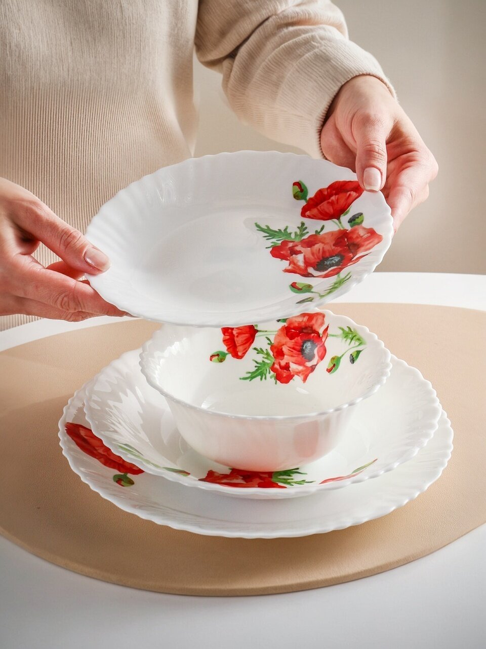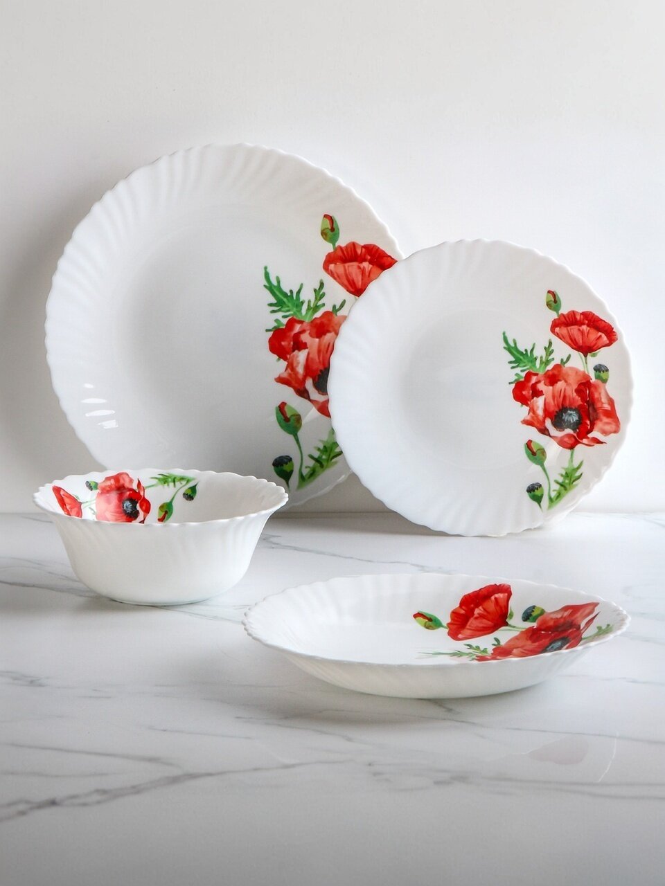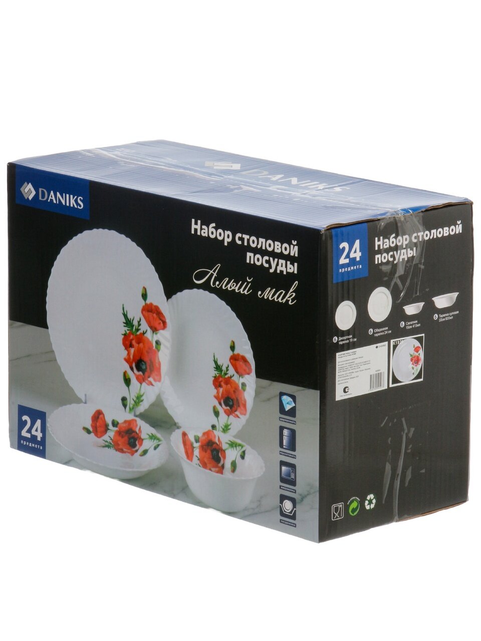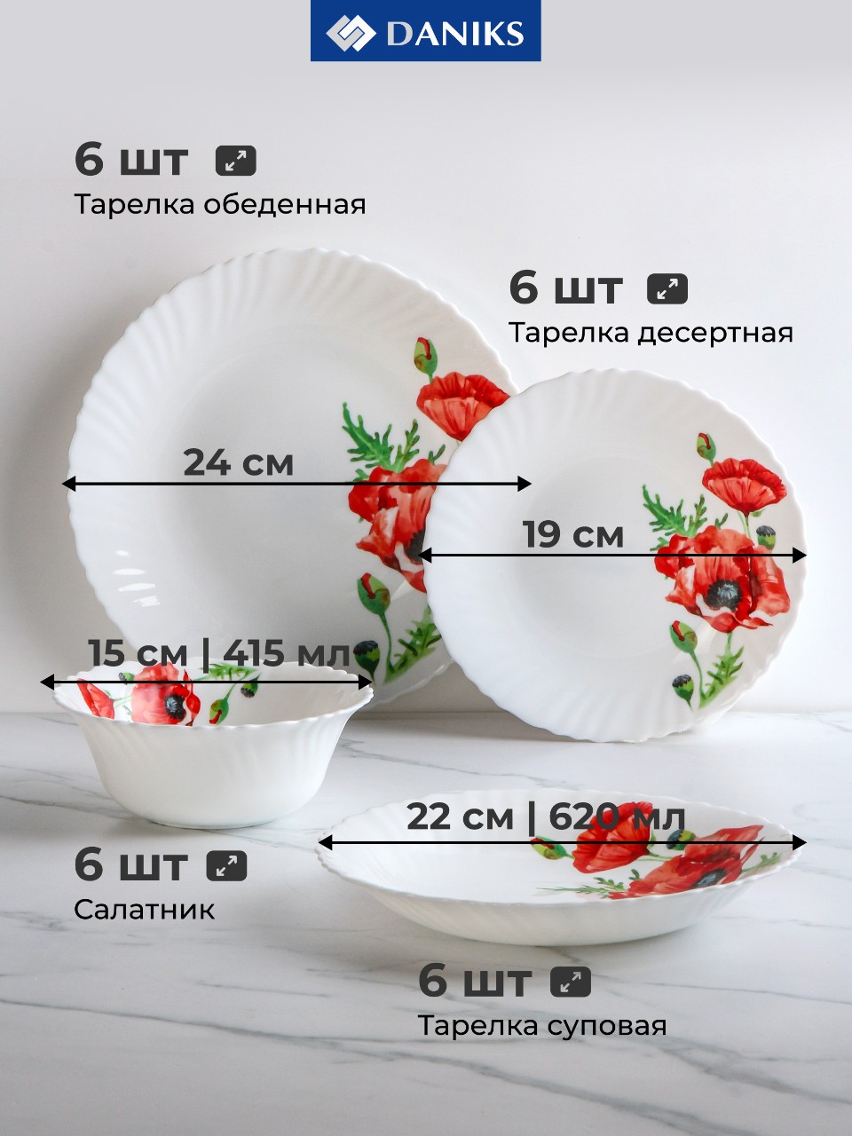 Сервиз столовый из стеклокерамики Daniks «Алый мак», 24 предмета на 6 персон: стильный подарок, практичное решение для дома и дачи, подходит для СВЧ и посудомоечной машины.