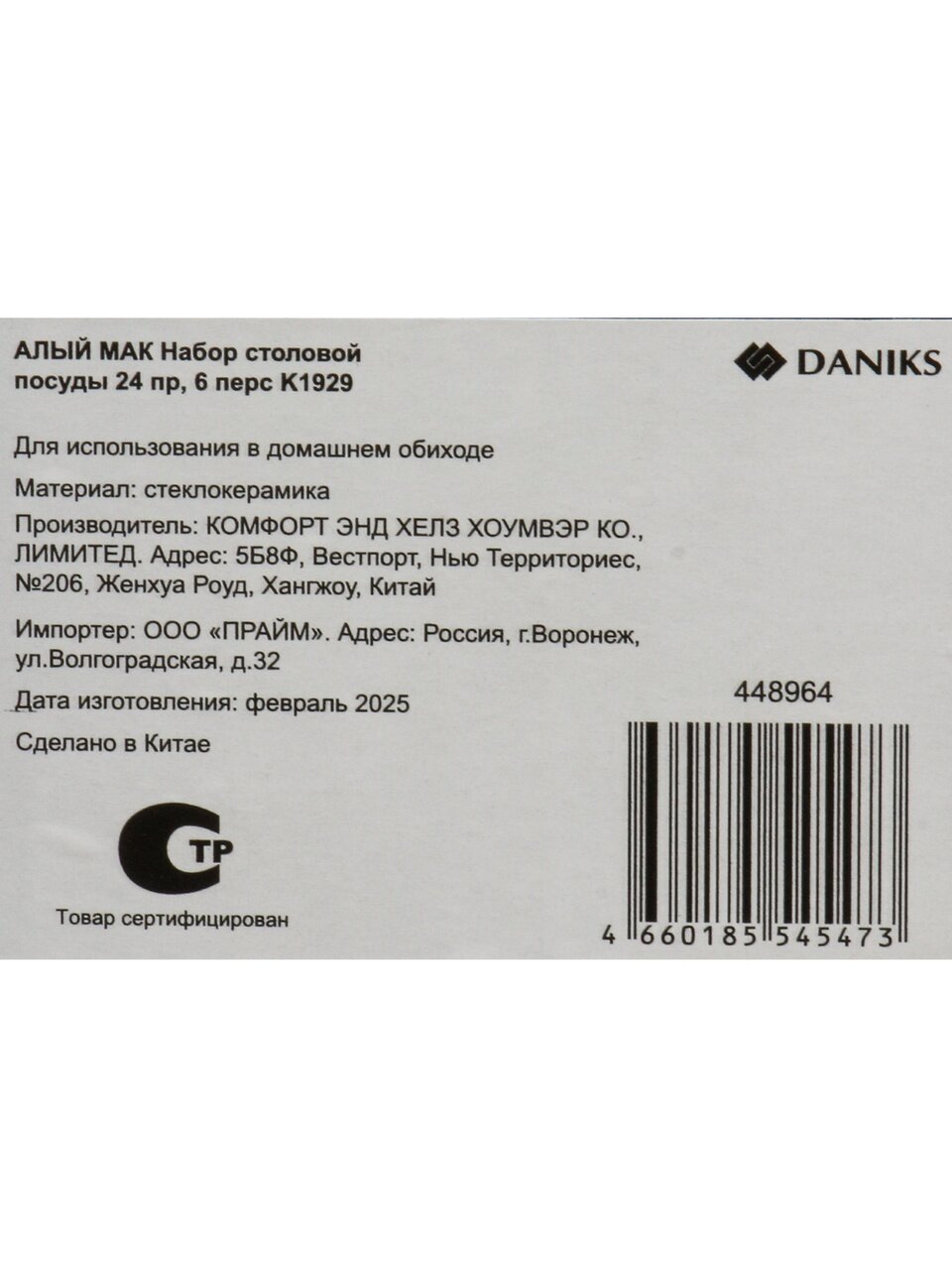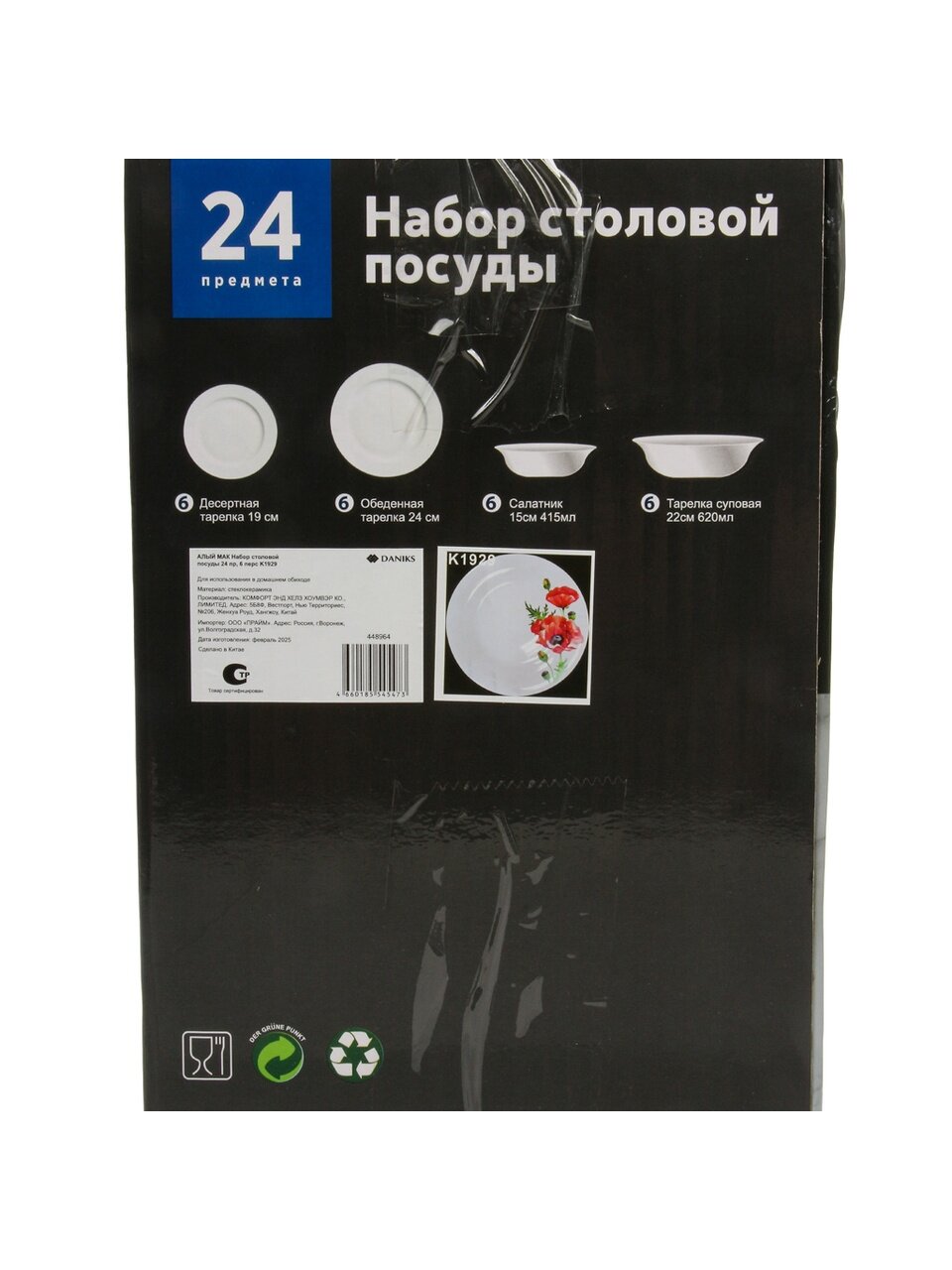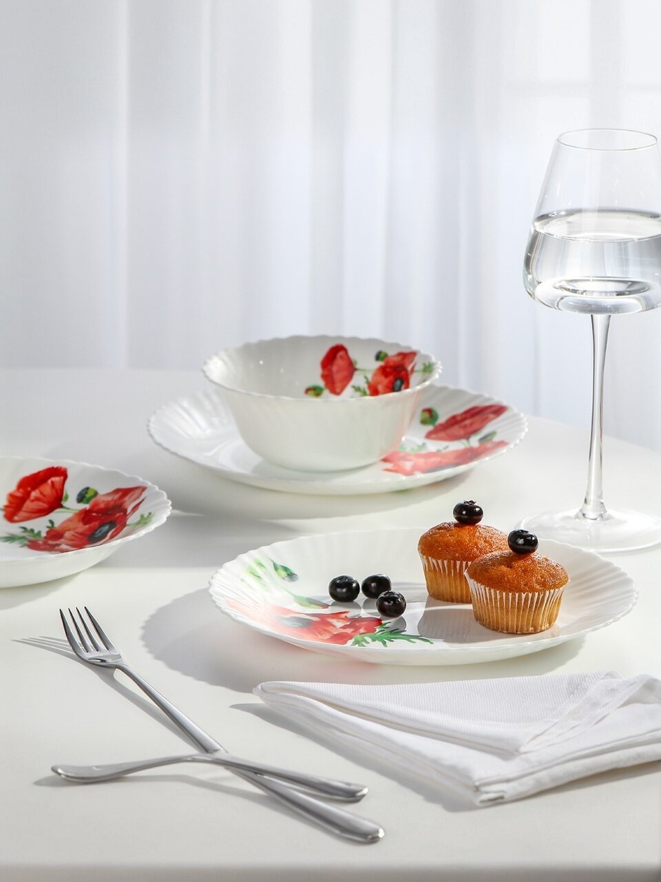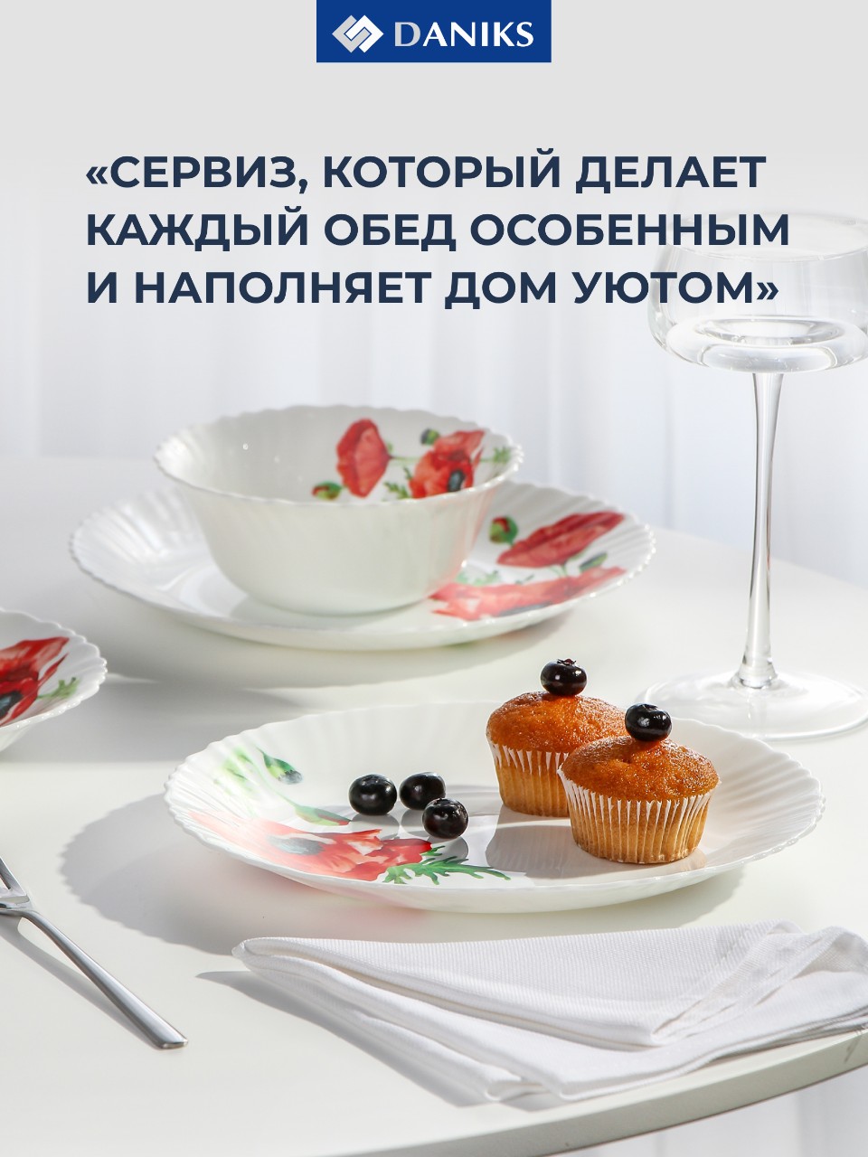 Сервиз столовый из стеклокерамики Daniks «Алый мак», 24 предмета на 6 персон: стильный подарок, практичное решение для дома и дачи, подходит для СВЧ и посудомоечной машины.