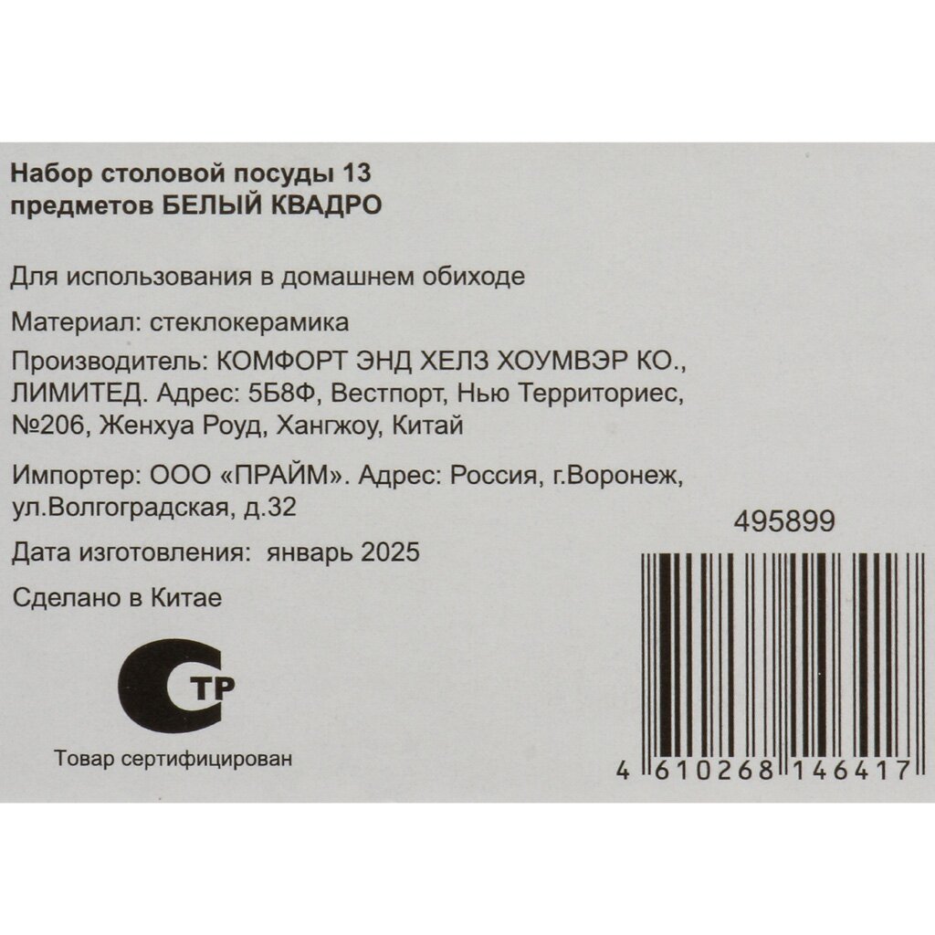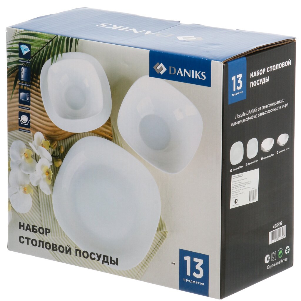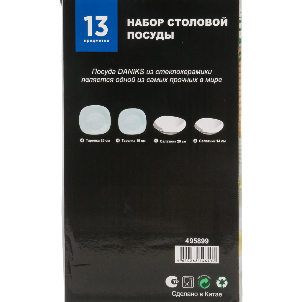Столовый сервиз Daniks Белый Квадро на 4 персоны: 13 предметов из стеклокерамики — современный выбор для стильной сервировки и ежедневного комфорта.