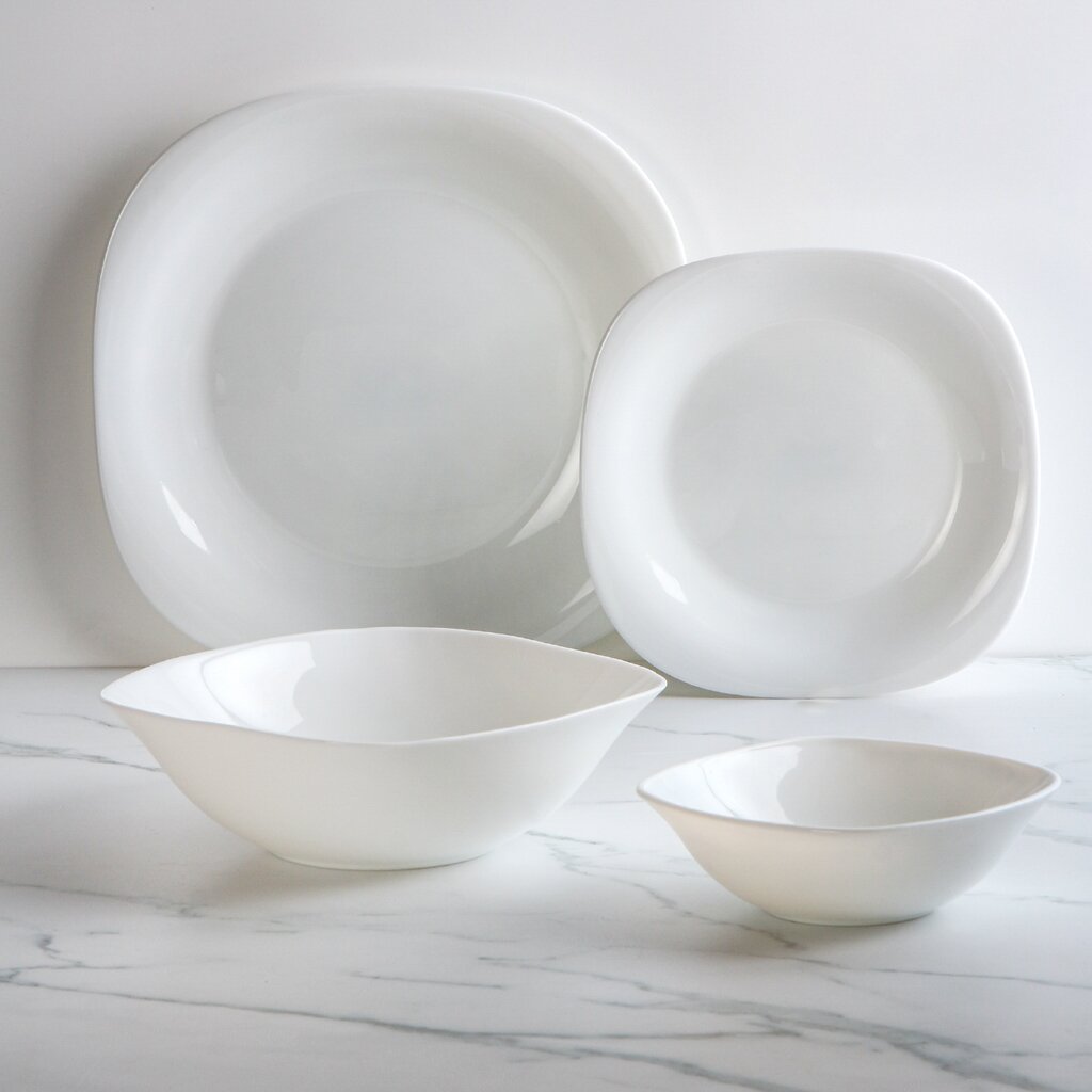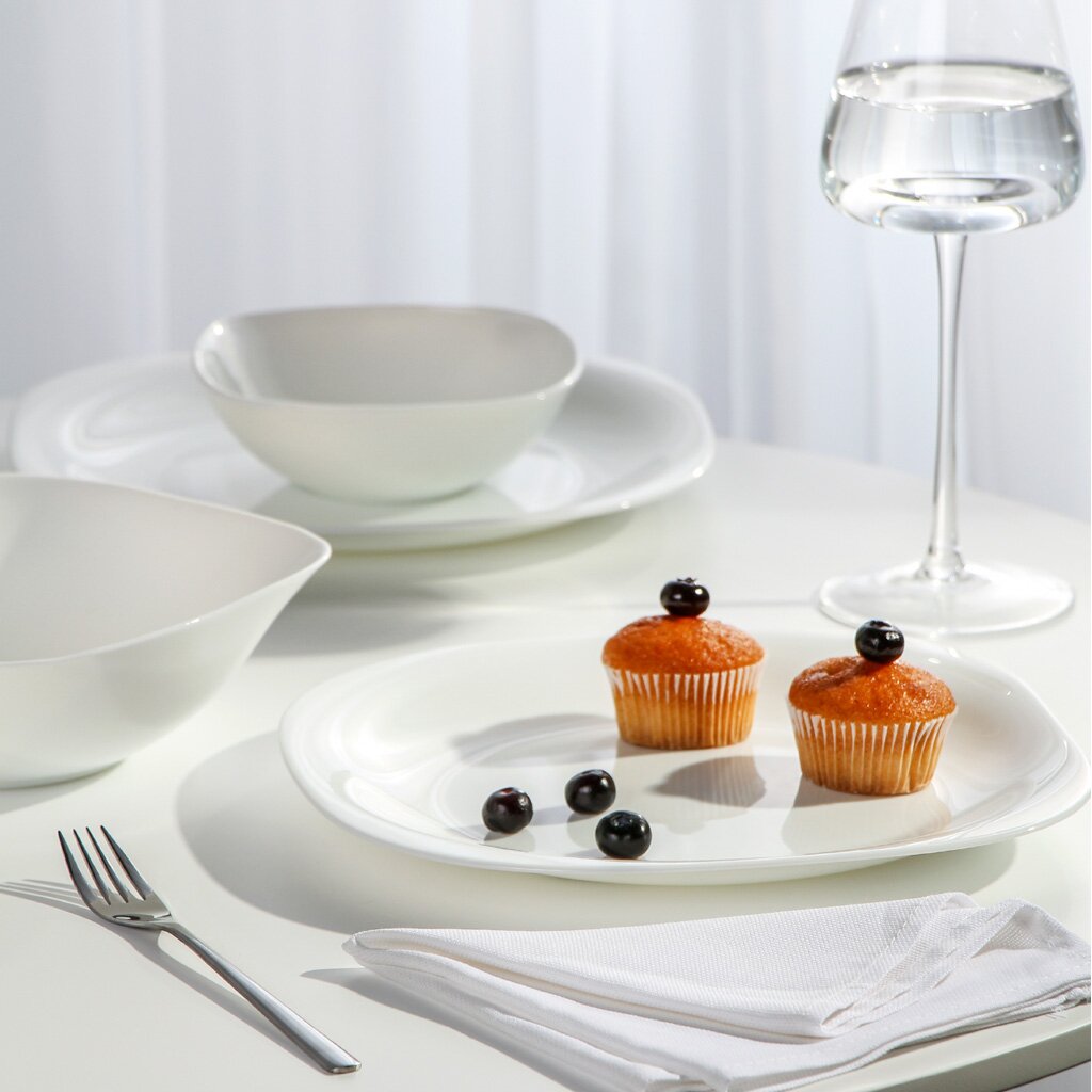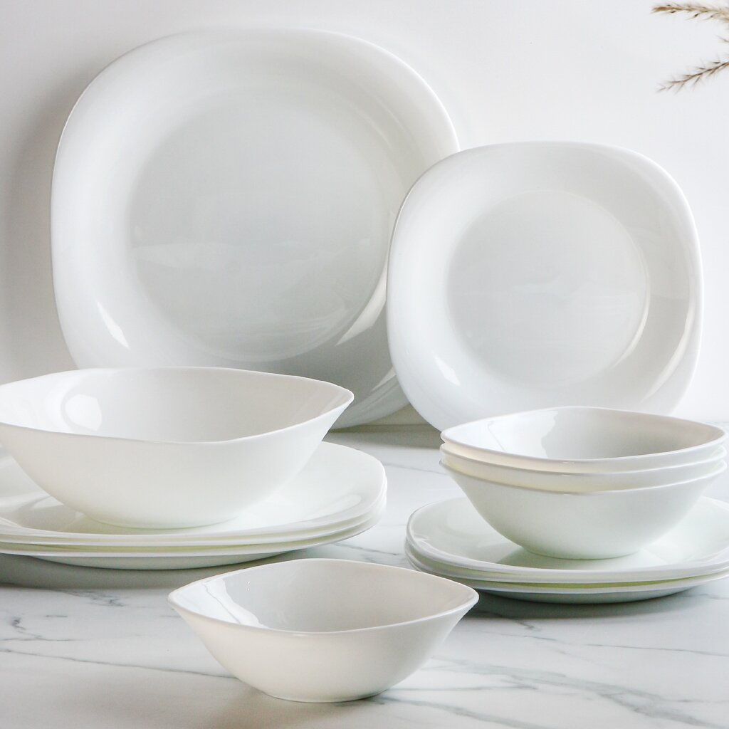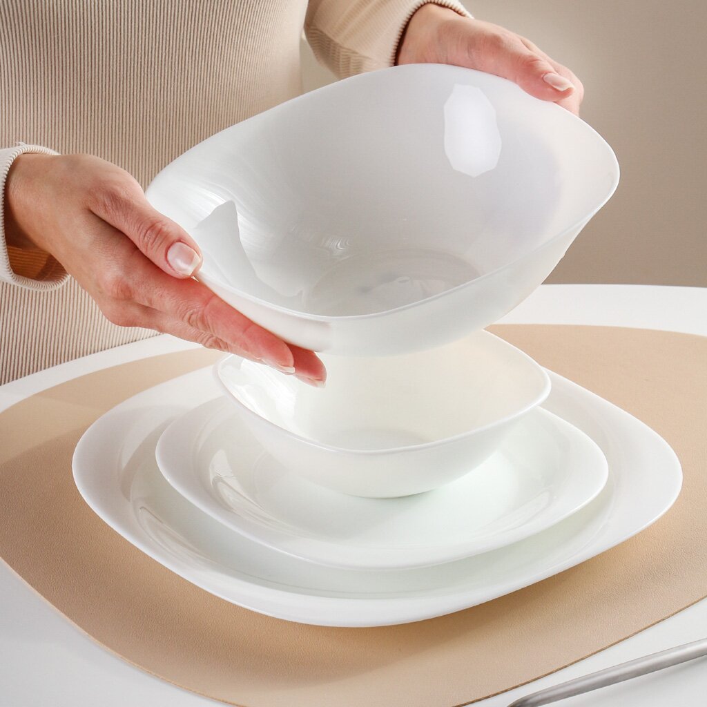Столовый сервиз Daniks Белый Квадро на 4 персоны: 13 предметов из стеклокерамики — современный выбор для стильной сервировки и ежедневного комфорта.