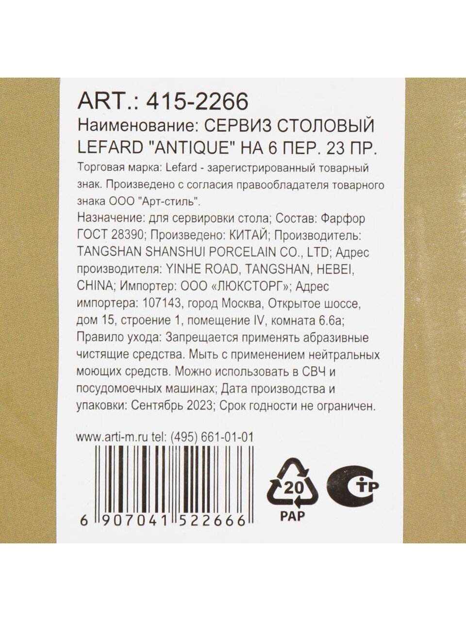 Сервиз столовый фарфор Lefard Antique 23 предмета: элегантный подарок и практичное решение для стильной сервировки на 6 персон — долговечность и универсальность за разумную цену.