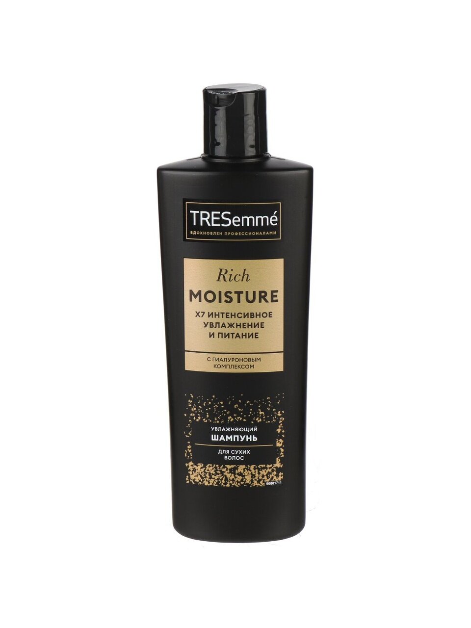 Увлажняющий шампунь TRESemmé Rich Moisture с гиалуроновым комплексом для сухих волос эффективно очищает, удерживая влагу в стержне волоса.