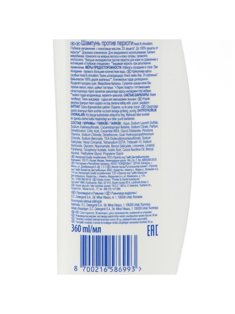Шампунь Head & Shoulders «Глубокое увлажнение» 360 мл — быстрое решение проблемы перхоти и сухости кожи головы для всей семьи. Эффект с первого применения, свежий аромат и универсальность!