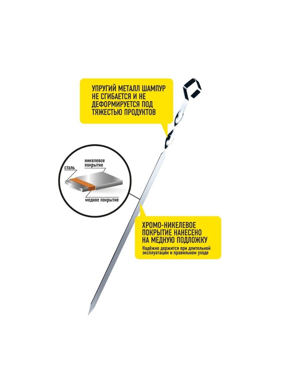 - Материал шампура: сталь с коррозионностойким покрытием.