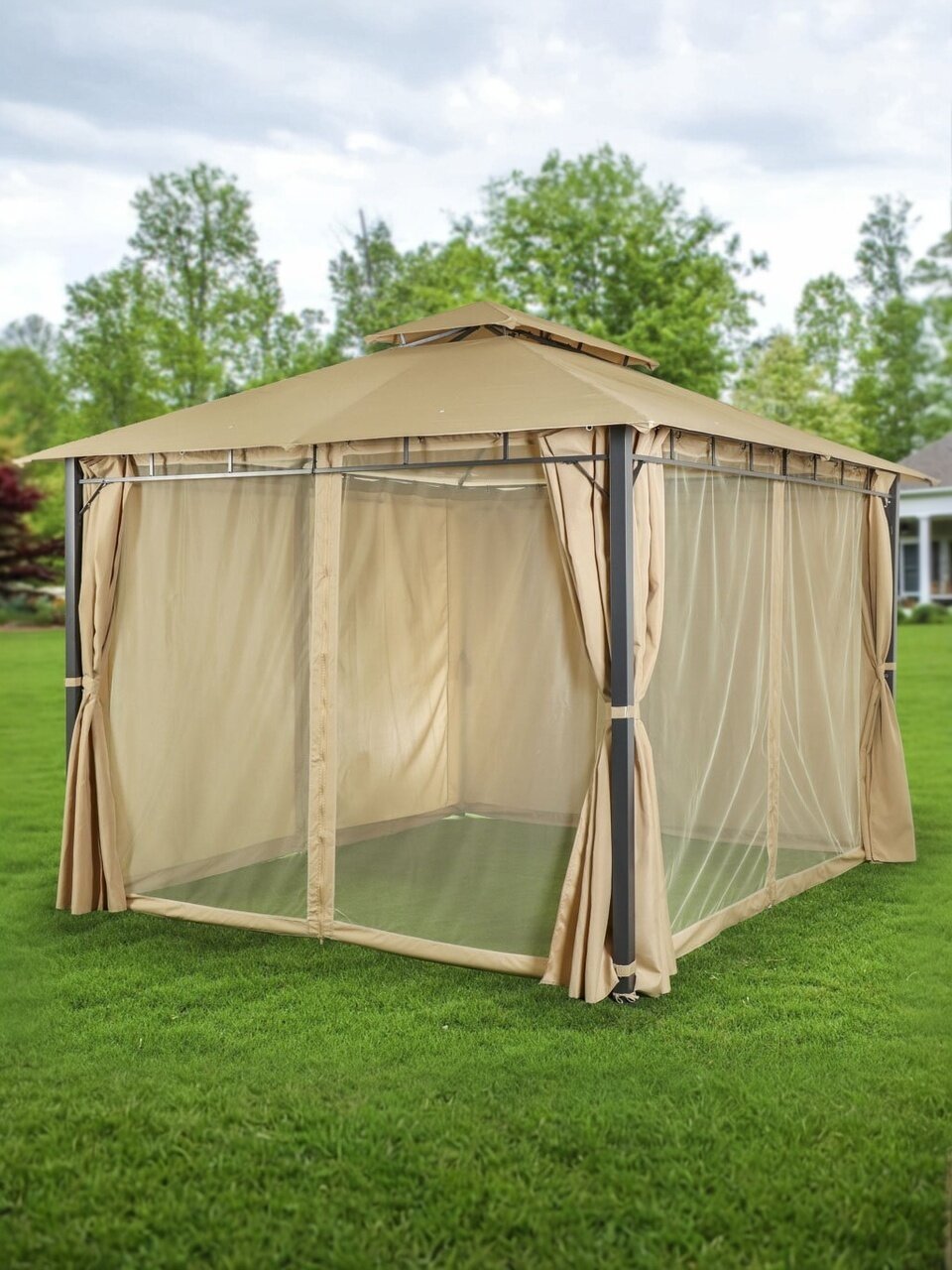 Вы можете приобрести «Шатер с москитной сеткой, песочный, 3.21х2.56х3 м, четырехугольный, двойная крыша, Green Days, KT-G034-orig» и другие товары в нашем интернет-магазине в Коврове по низким ценам и с бесплатным самовывозом.