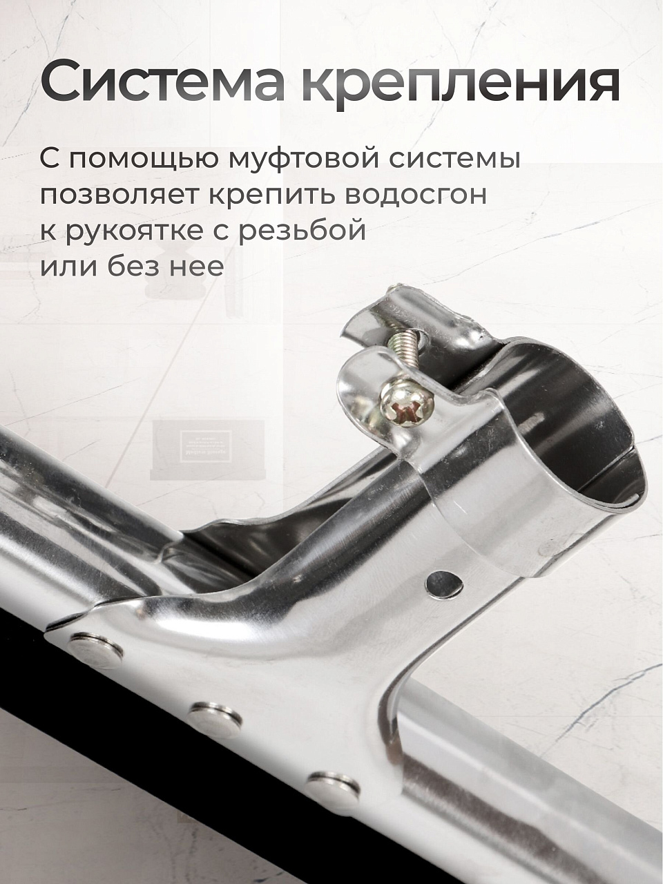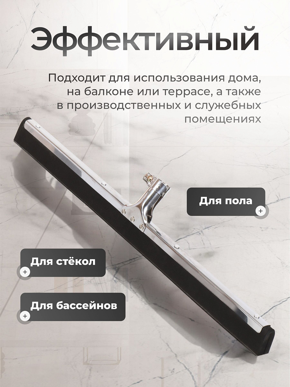 Швабру удобно использовать в качестве водосгона для больших по площади поверхностей. Оснащена прочной металлической рамой и резиновой прокладкой. Обеспечивает сушку пола без разводов. Благодаря муфтовой системе крепится к любой рукоятке. Рекомендуется для использования на производстве, а также дома и на даче на обширных поверхностях.
