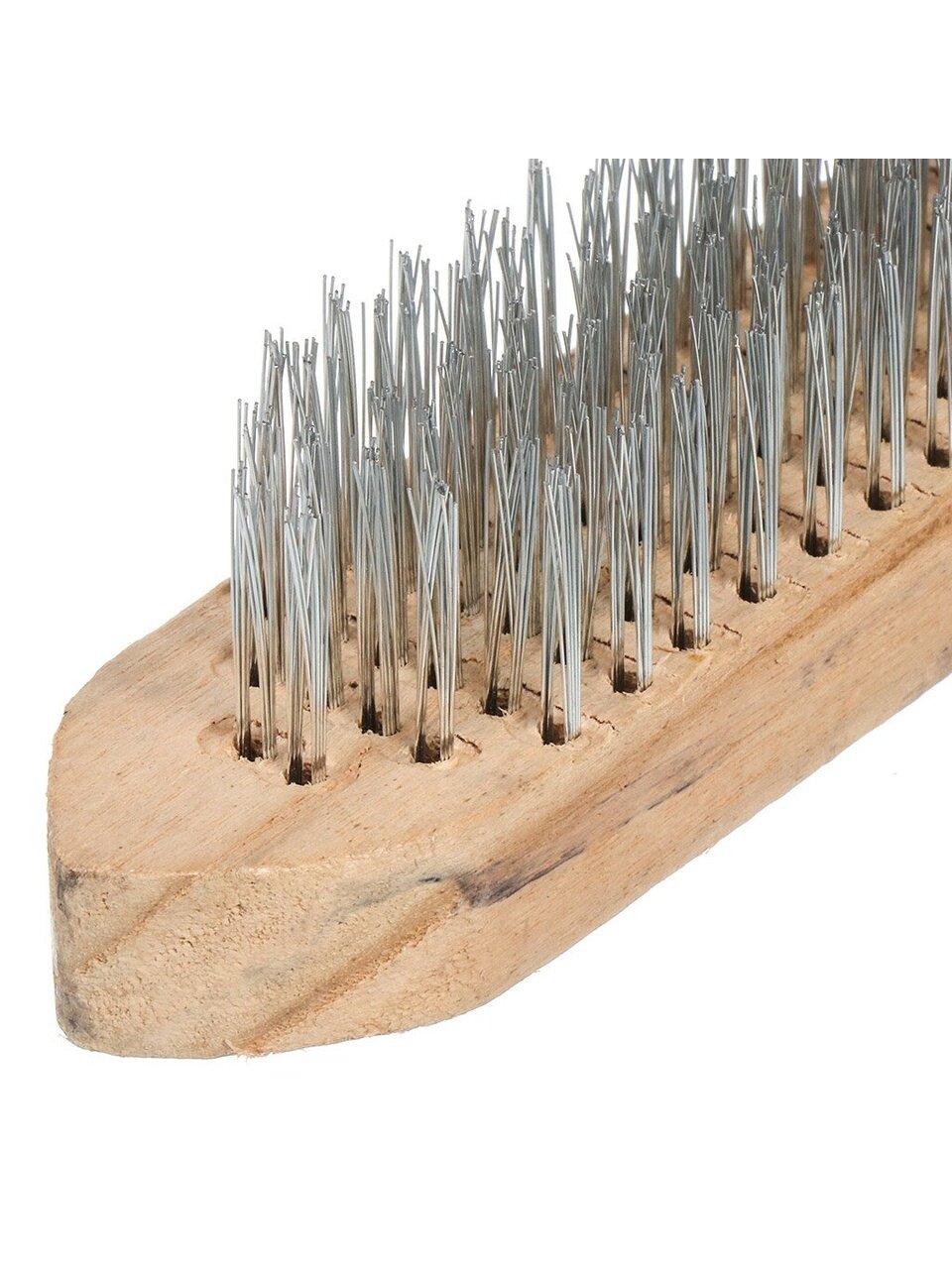 Щетка по металлу — полезный аксессуар для домашней мастерской. Стальная щетина позволяет грубо обрабатывать металлические поверхности. Использовать щётку можно при профессиональных работах и при проведении бытового ремонта. Изделие позволяет быстро снять отслаивающиеся чешуйки металла при его ржавлении, зачистить корродированные места, удалить старую отваливающуюся краску. Износостойкая щётка прослужит долго, не заржавеет и не развалится.