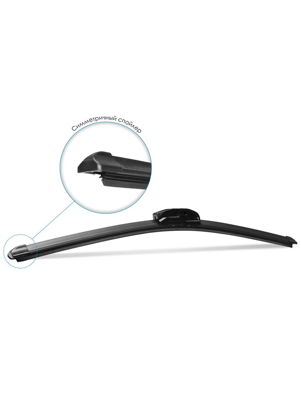 - Щетка имеет симметричный спойлер для контроля прижимной силы к стеклу автомобиля. Это обеспечивает хорошую очистку стекла во время движения на высоких скоростях.
