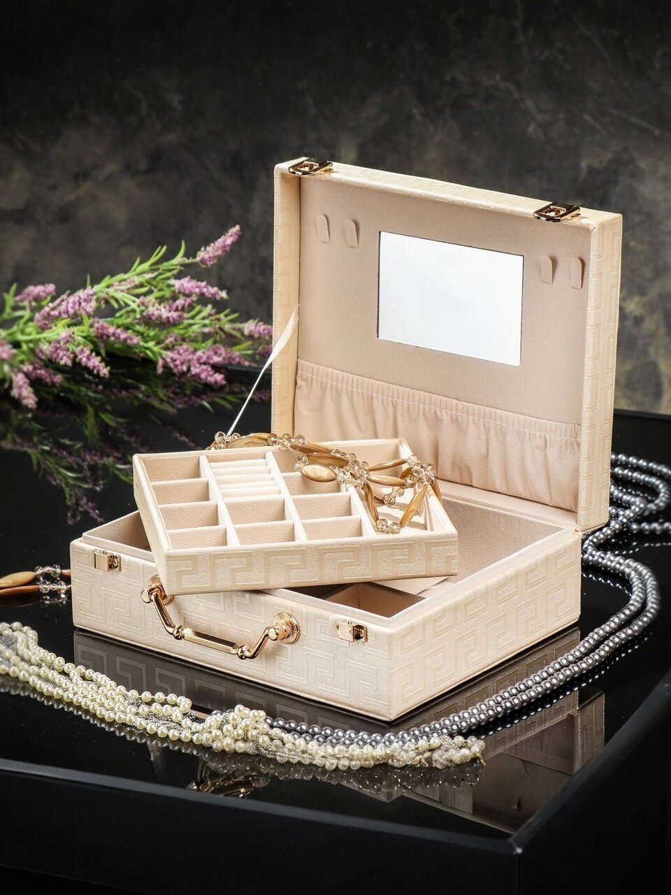 - Станет отличным органайзером благодаря отсекам внутри шкатулки.