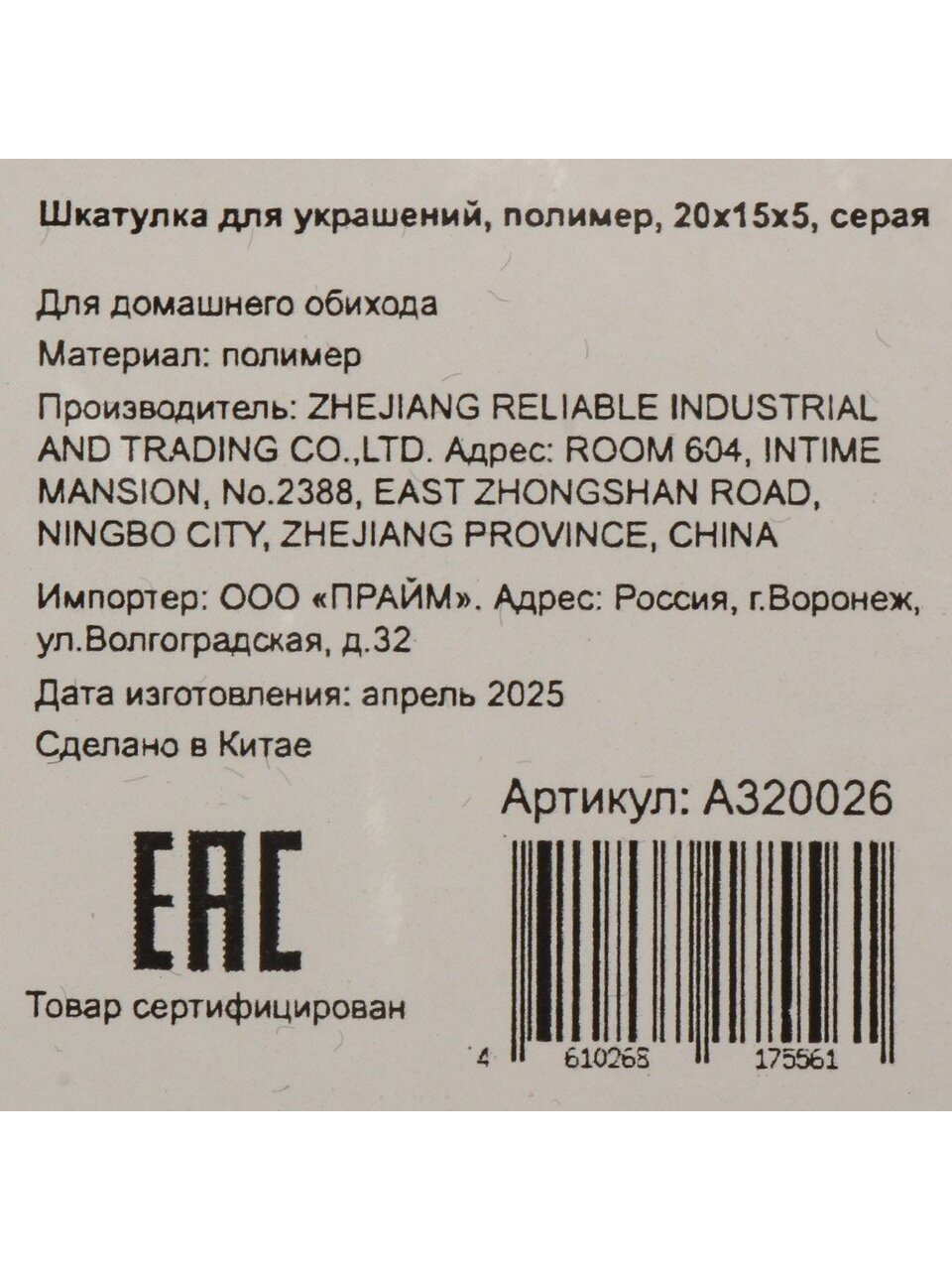 Вы можете приобрести «Шкатулка для украшений, полимер, 20х15х5 см, серая, A320026» и другие товары в нашем интернет-магазине в Белгороде по низким ценам и с бесплатным самовывозом.