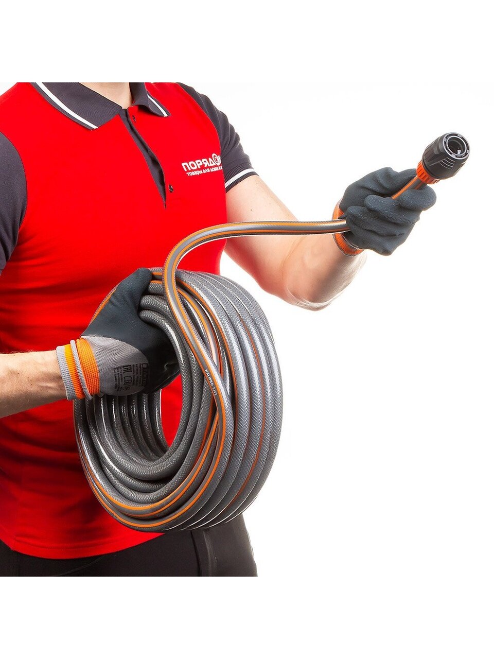 Шланг имеет диаметр 1/2 дюйма (12 мм), что обеспечивает оптимальный поток воды для эффективного полива. Длина 20 метров позволяет легко добраться до всех уголков вашего сада или участка, не прибегая к дополнительным удлинителям. Антиторсионная функция предотвращает перекручивание, обеспечивая комфортное и беспроблемное использование.