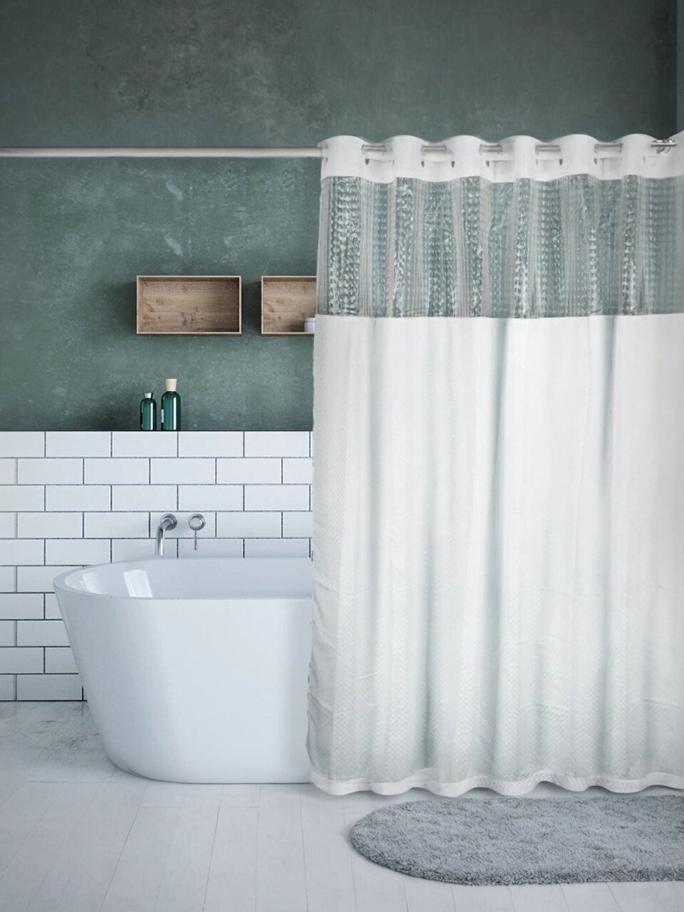 Благодаря большому размеру и плотному материалу штора обеспечит эффективную защиту от водяных брызг, предотвратив их распространение на пол и окружающие предметы, что поможет сохранить ванную комнату сухой и чистой.