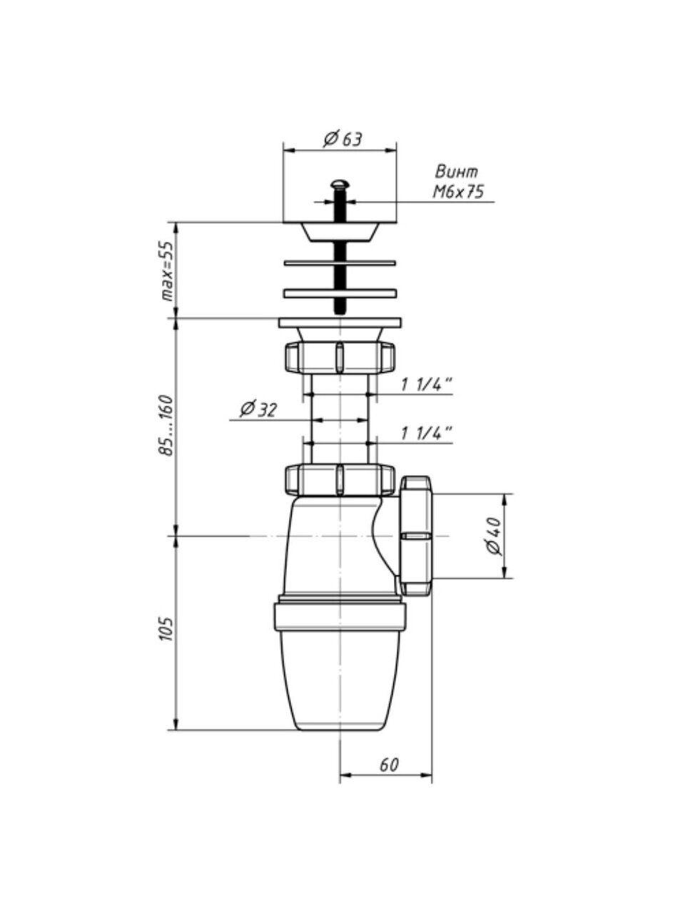 Сифон прост в установке и выполняет свою главную функцию - формирование гидрозатвора для отсечения неприятных запахов из канализации.