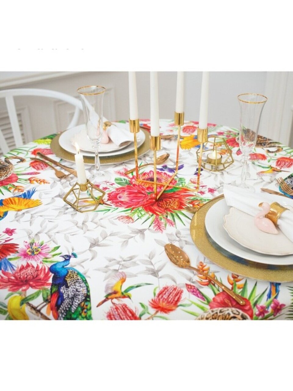 Скатерть Этель станет прекрасным украшением праздничного стола и сделает домашнюю обстановку еще более уютной. Такая скатерть станет практичным подарком, который принесет радость любой хозяйке. Скатерть предназначена для защиты стола от загрязнений, красивой сервировки и смягчения звуков столовых приборов о столешницу.