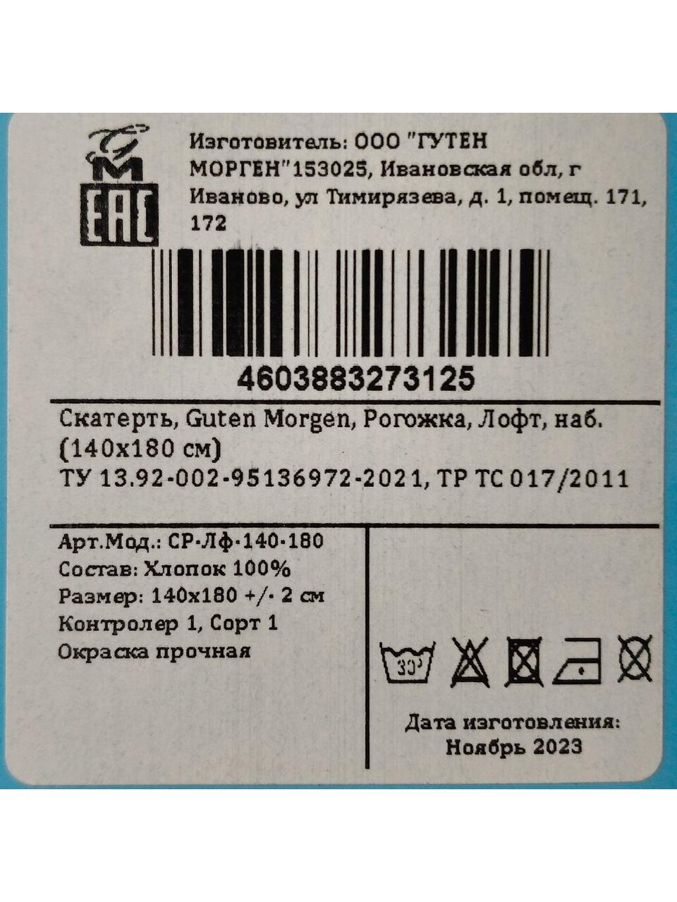 Вы можете приобрести «Скатерть 140х180 см, 100% хлопок, рогожка, 180 г/м2, Guten Morgen, Лофт, СР-Лф-140-180» и другие товары в нашем интернет-магазине в Белгороде по низким ценам и с бесплатным самовывозом.