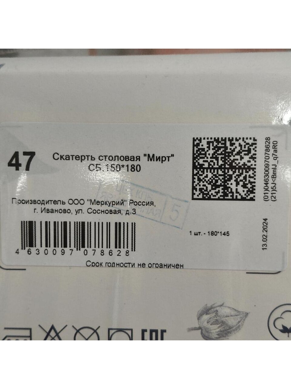 Вы можете приобрести «Скатерть 145х180 см, 100% хлопок, рогожка, 160 г/м2, АртДизайн, Мирт» и другие товары в нашем интернет-магазине в Казани по низким ценам и с бесплатным самовывозом.