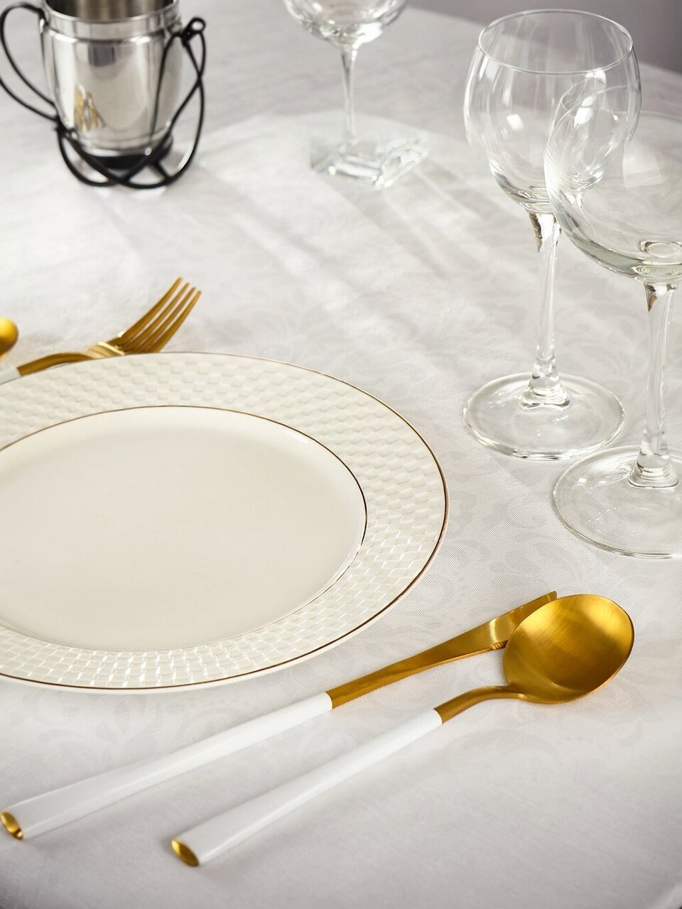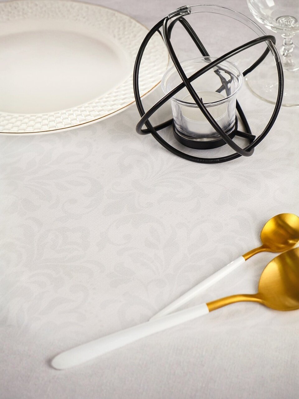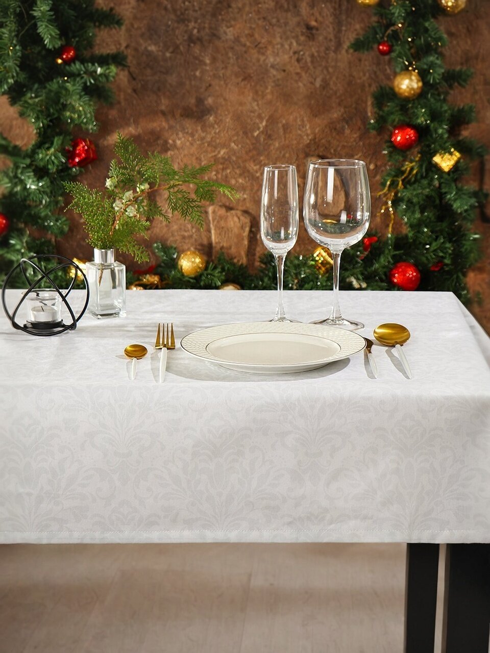 Скатерть предназначена для защиты стола от загрязнений, красивой сервировки и смягчения звуков столовых приборов о столешницу.